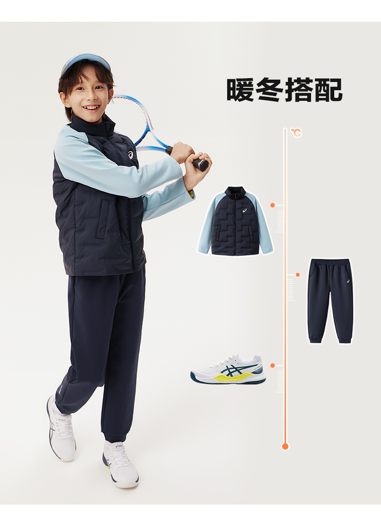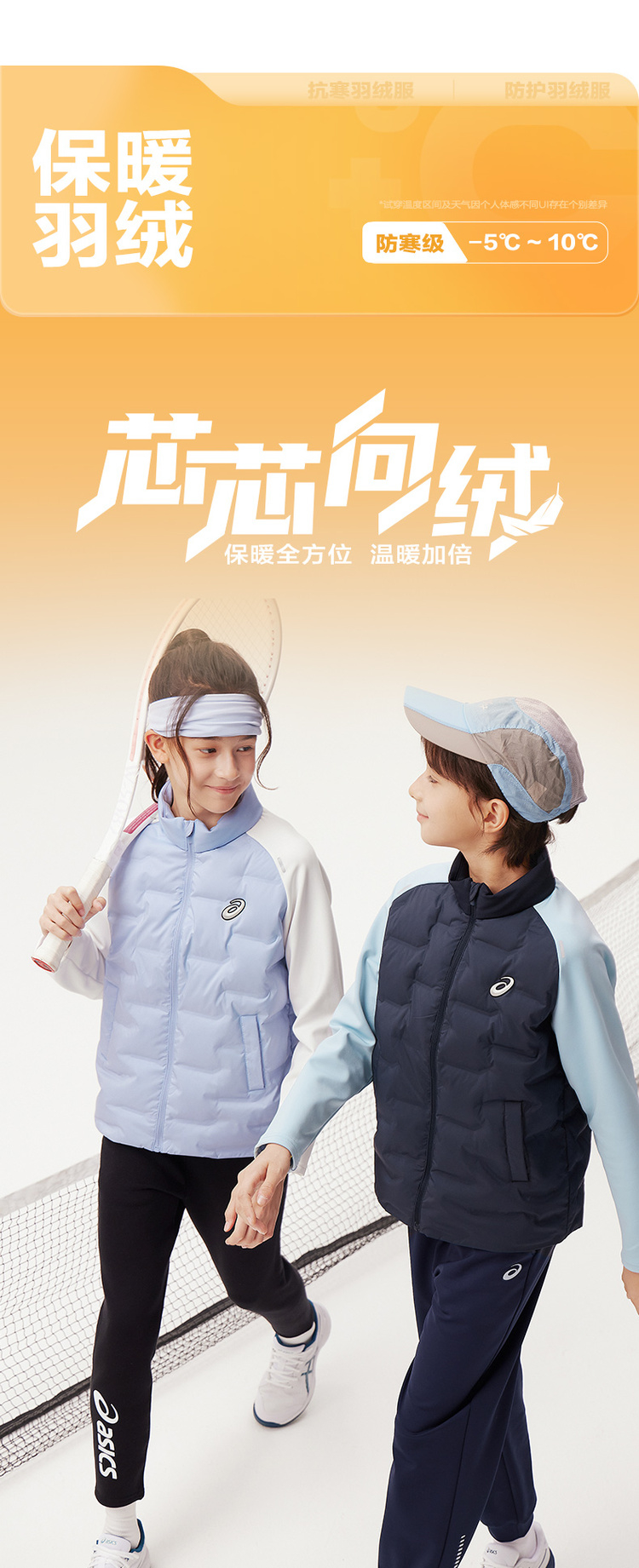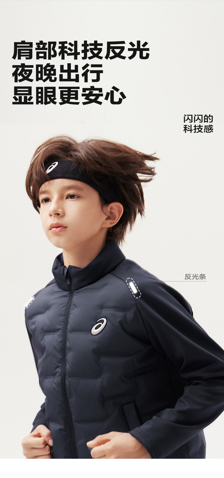 Asics/亚瑟士童装2024年冬季轻薄保暖羽绒服运动弹力羽绒夹克新品