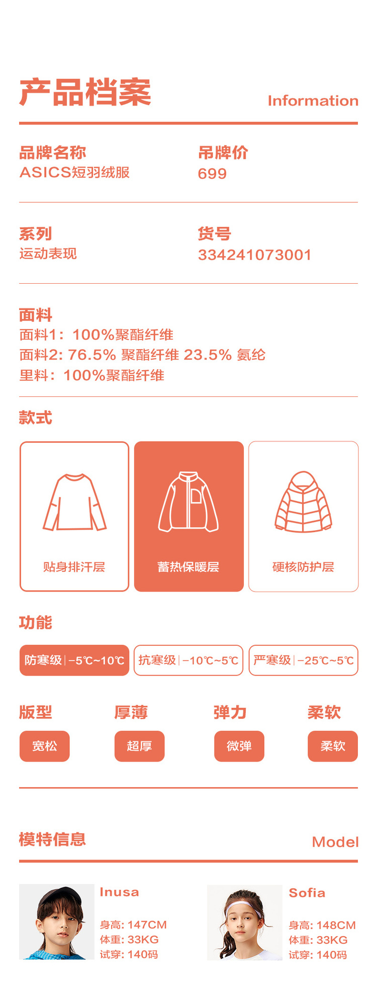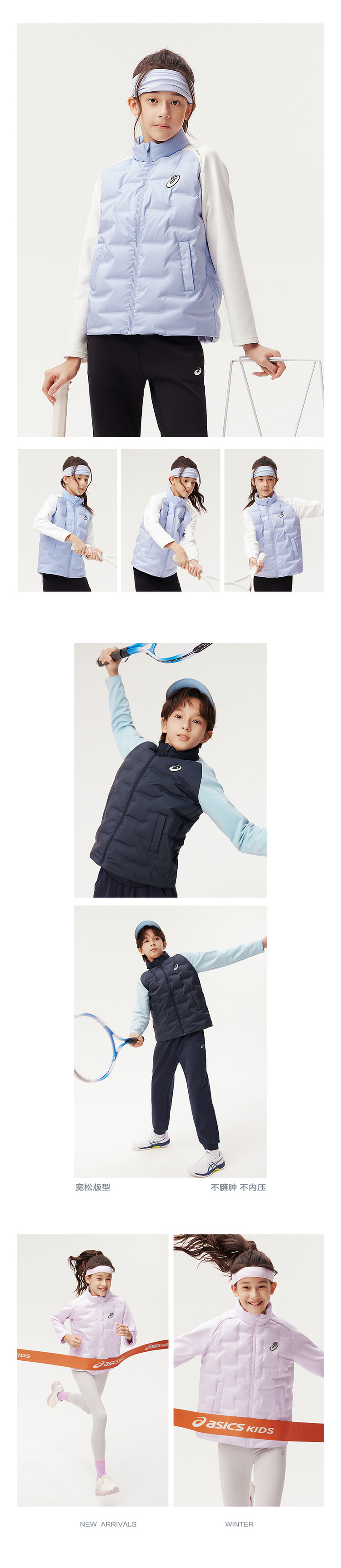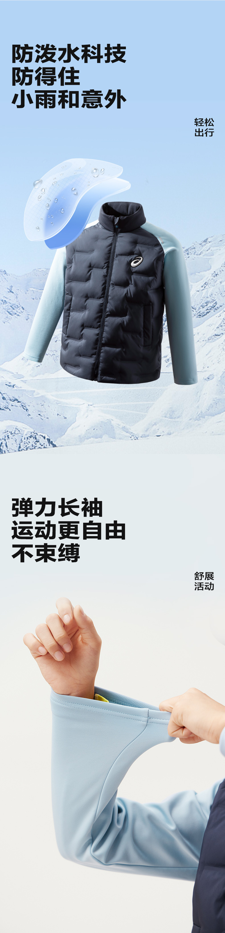 Asics/亚瑟士童装2024年冬季轻薄保暖羽绒服运动弹力羽绒夹克新品