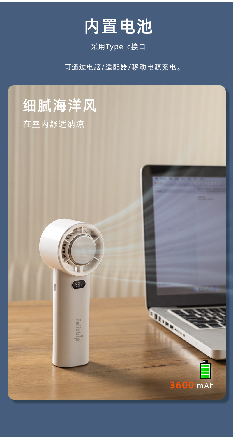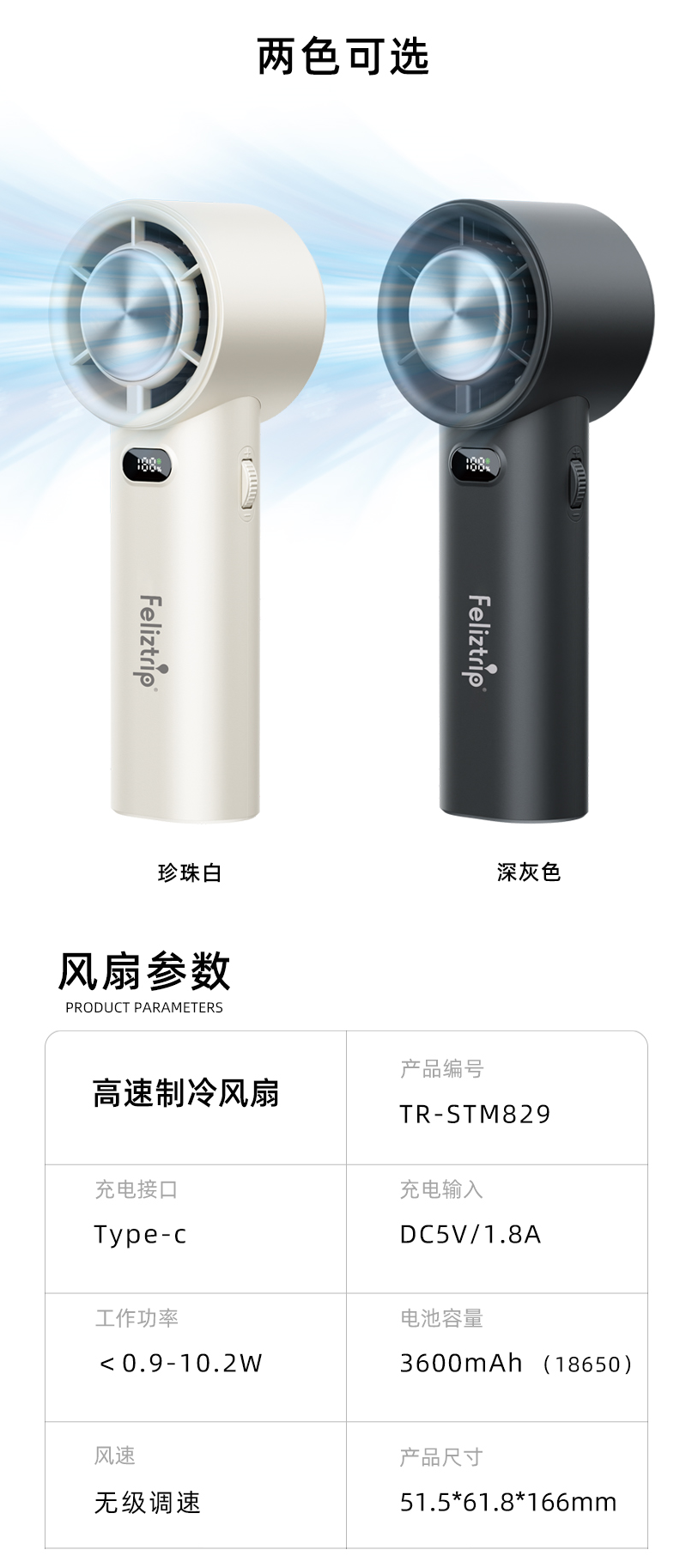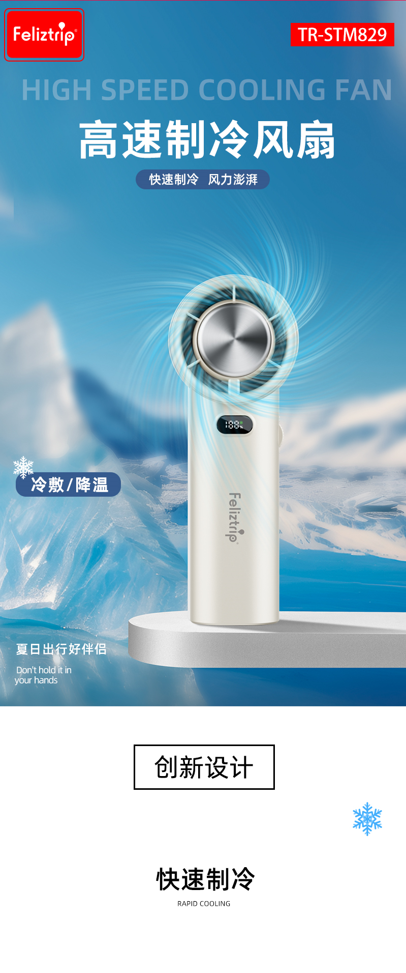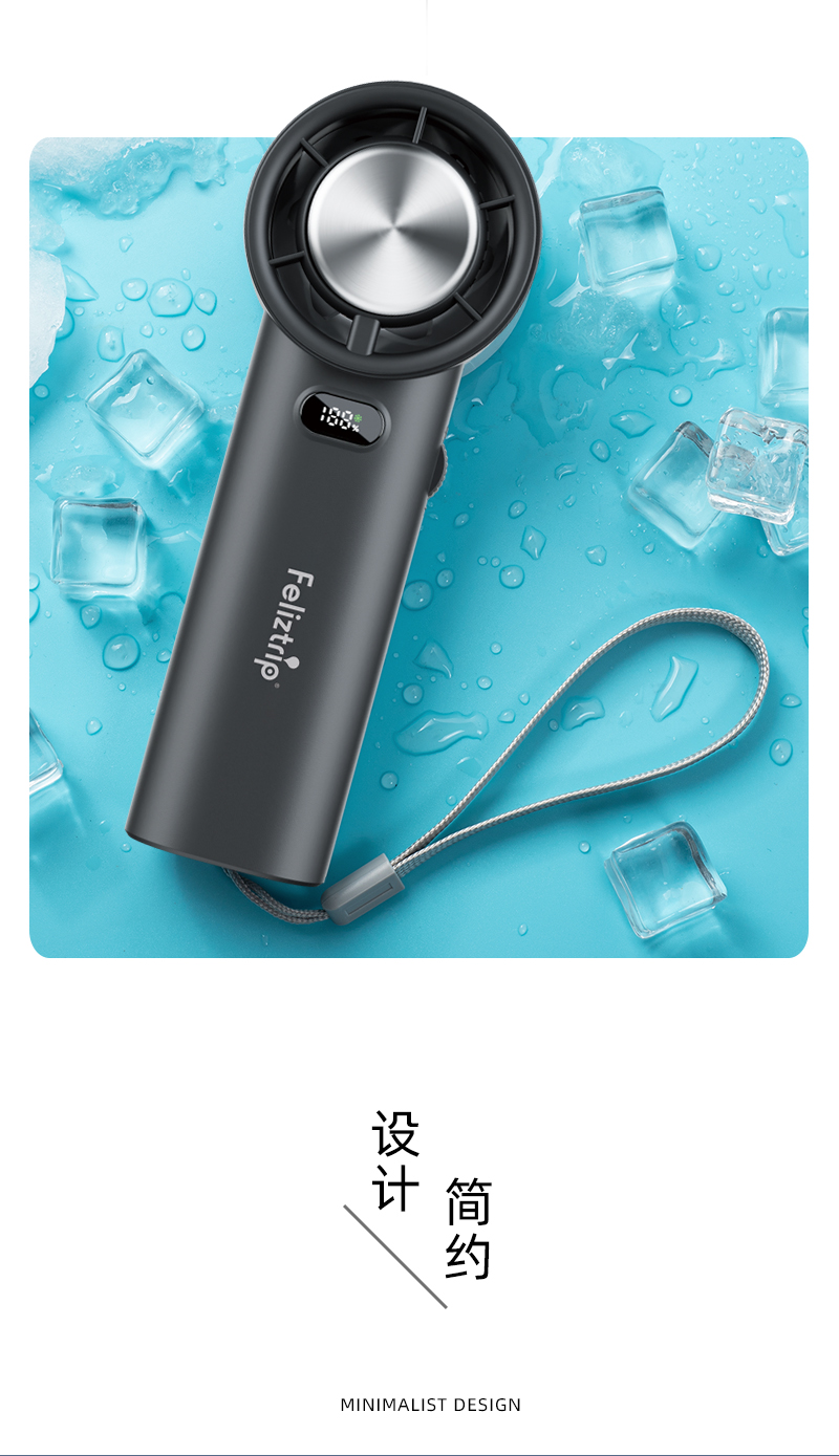 Feliztrip米微乐游 高速冰敷降温手持风扇3600mah大电池无极变速带数显 TR-STM829