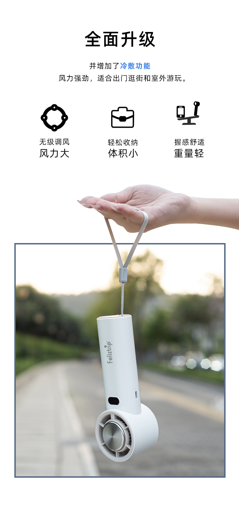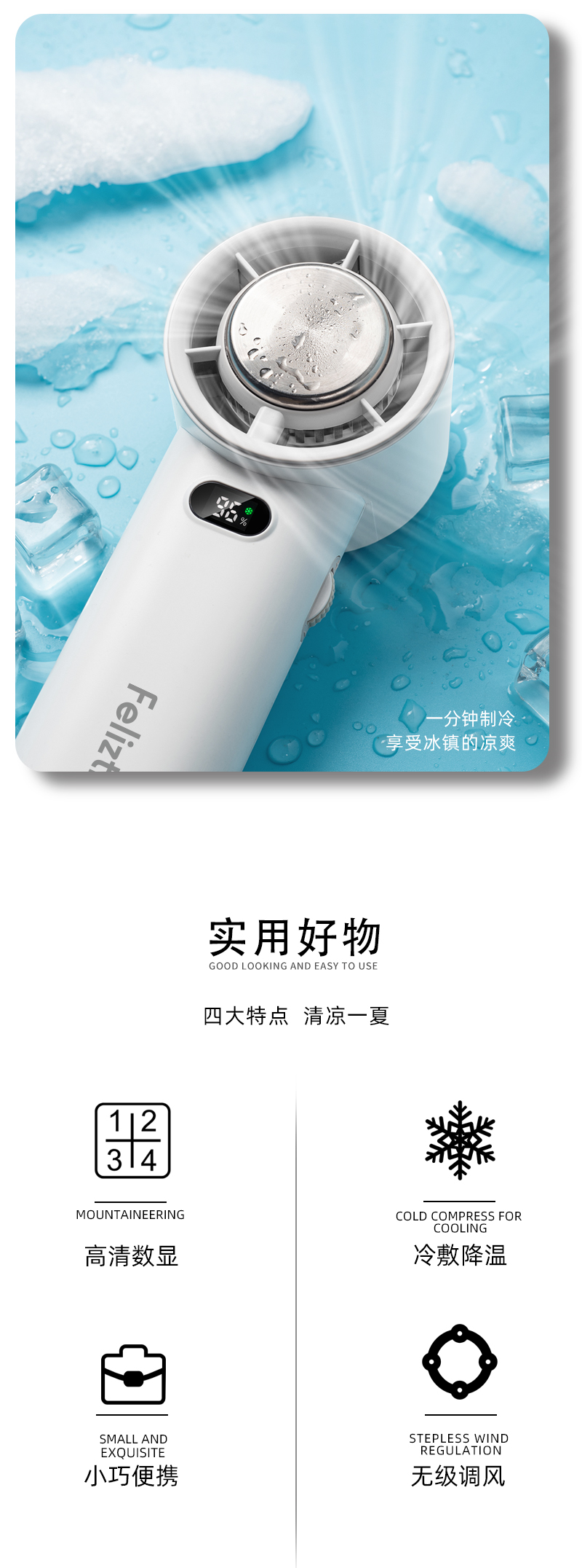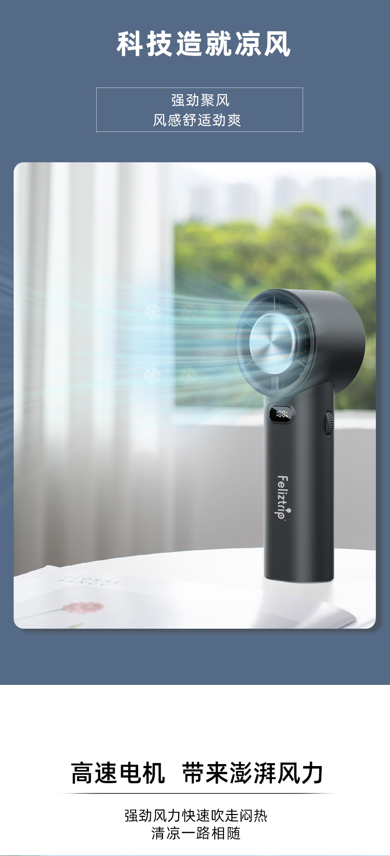 Feliztrip米微乐游 高速冰敷降温手持风扇3600mah大电池无极变速带数显 TR-STM829