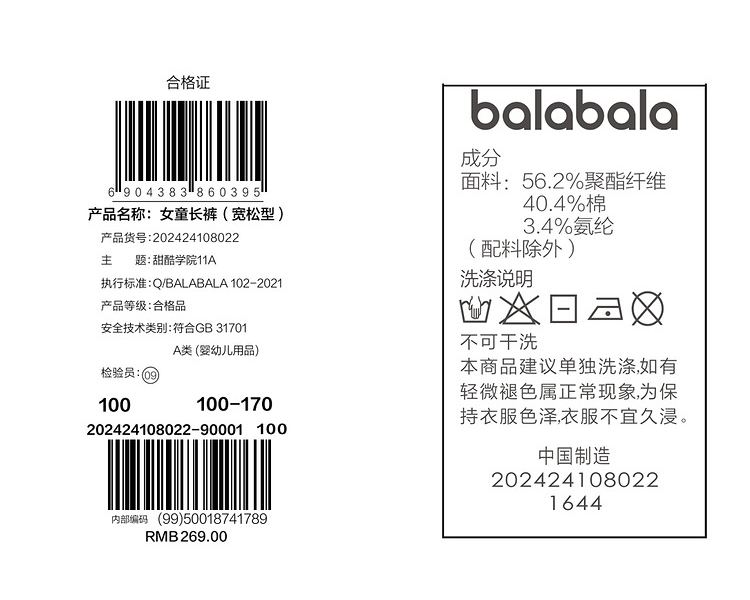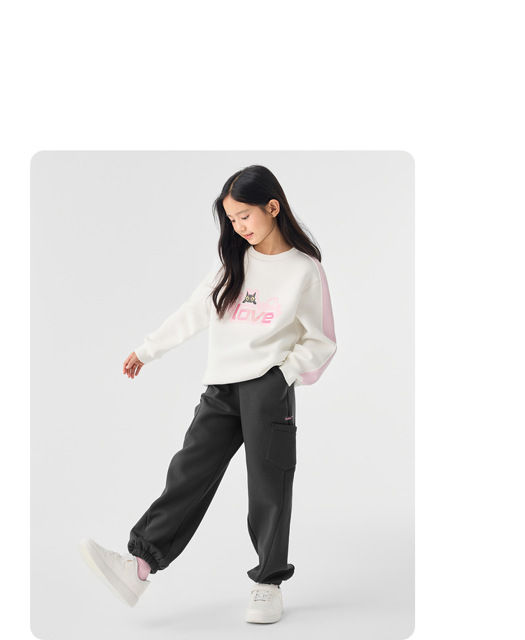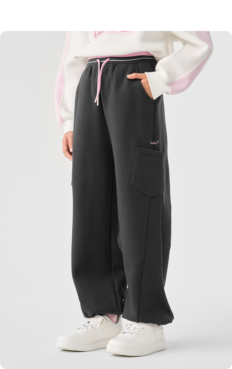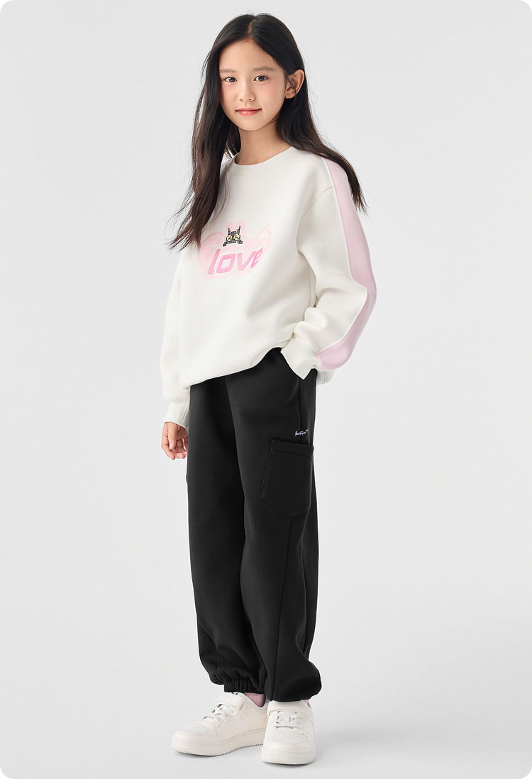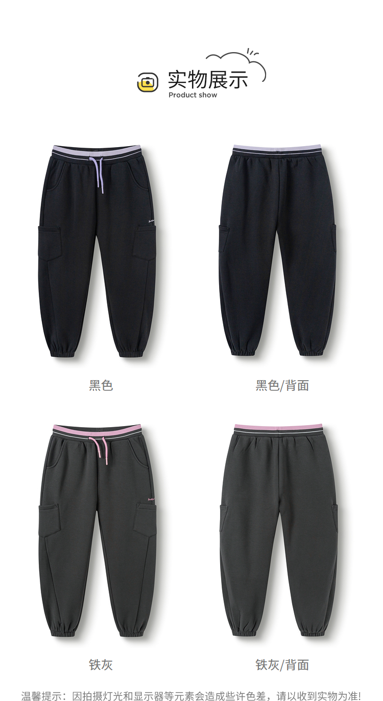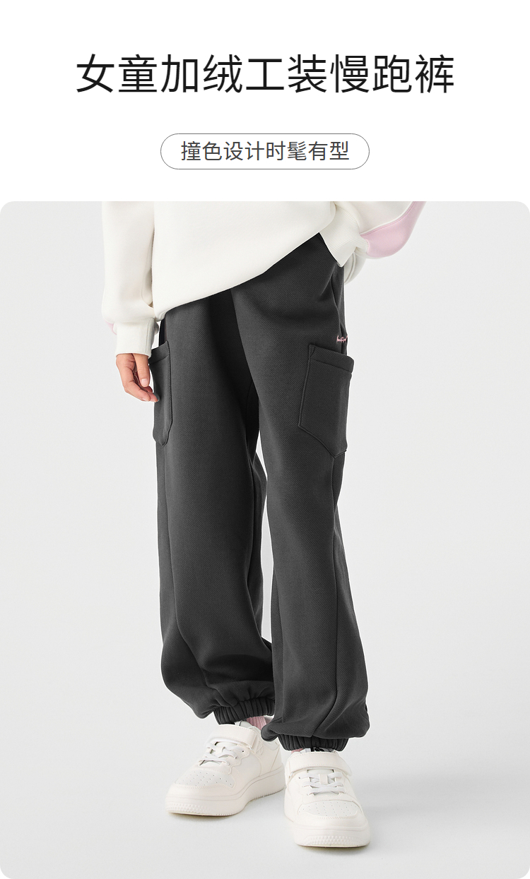 巴拉巴拉童装女童加绒裤子冬装慢跑裤撞色儿童保暖一体绒运动休闲