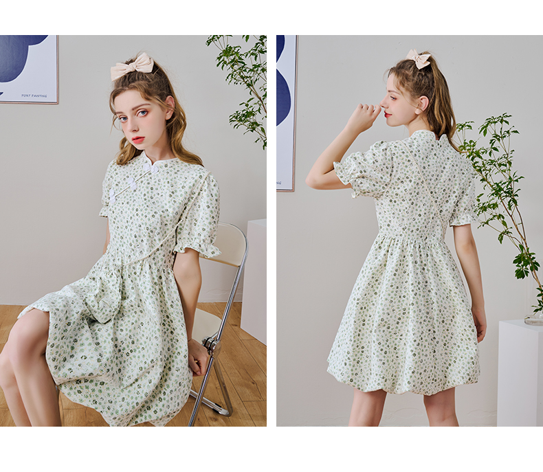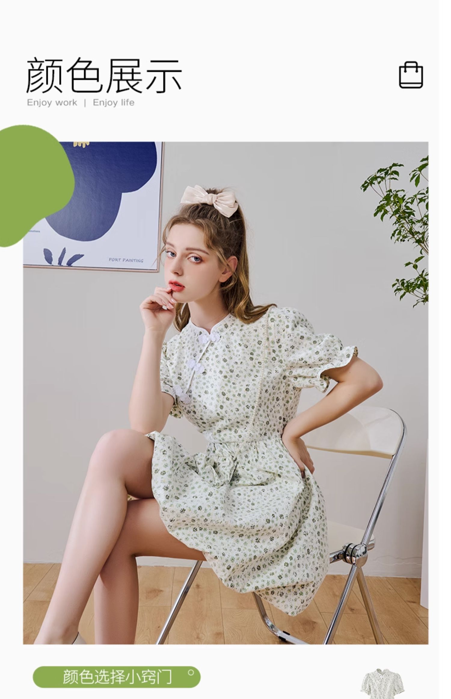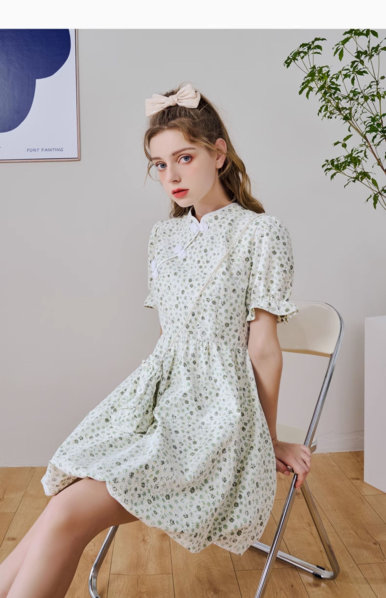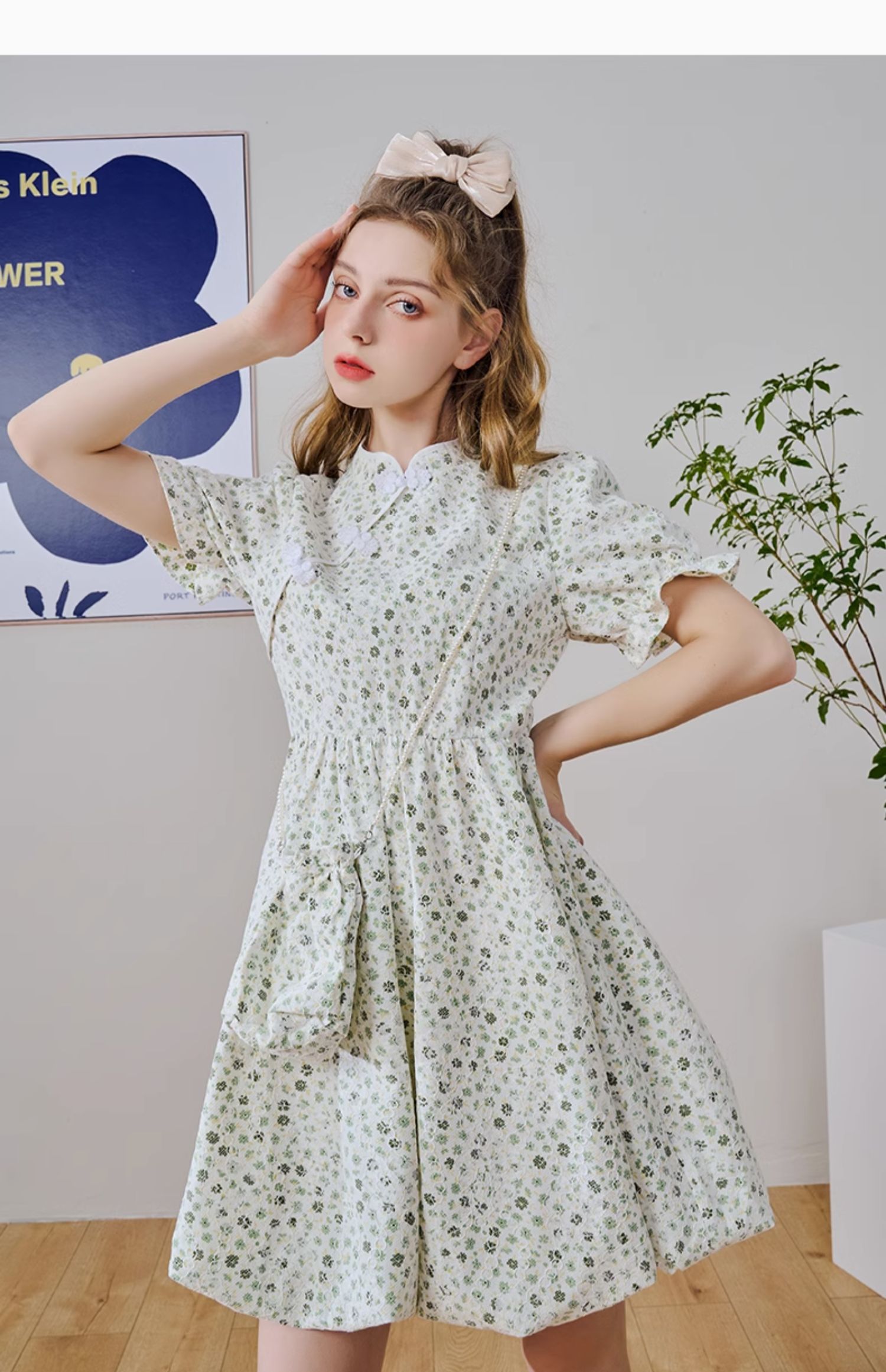 mc2碎花连衣裙带小包中式立领盘扣设计小个子连衣裙