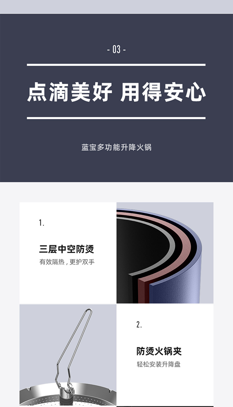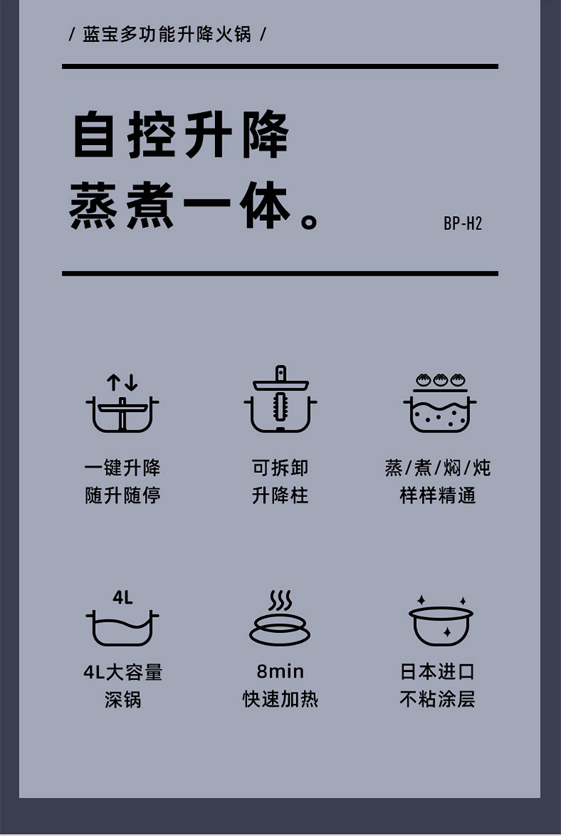 蓝宝智能自动升降电火锅家用一体多功能料理锅电热锅电煮锅