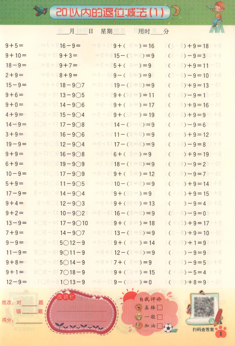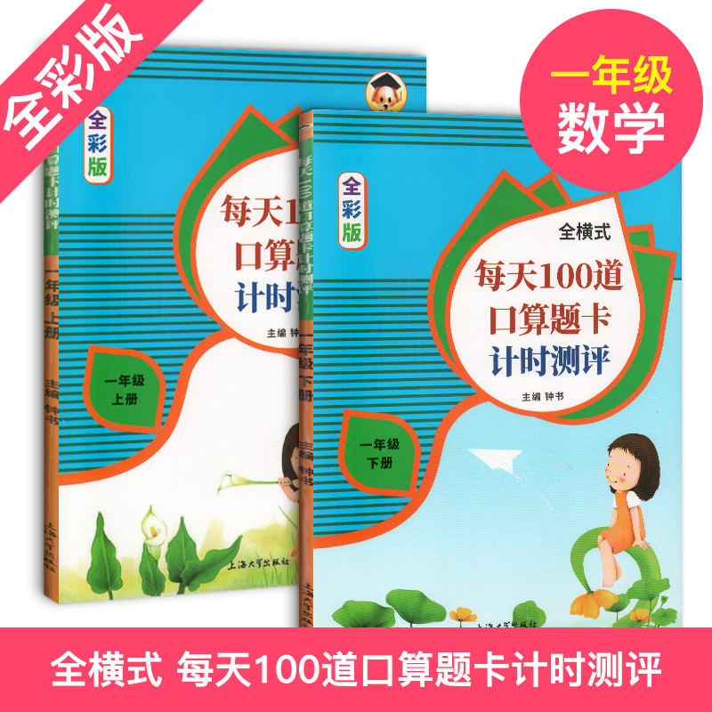 共2本一年级数学口算题每天100道口算题卡计算能手上下册小学1年级20以内10加减法口算心算速算天天练小学数学思维训练RJ人教