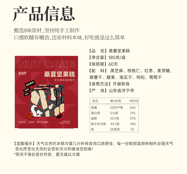 滋仙家庭健康小零食桑葚坚果糕(180g/盒) 盒装,到手2盒