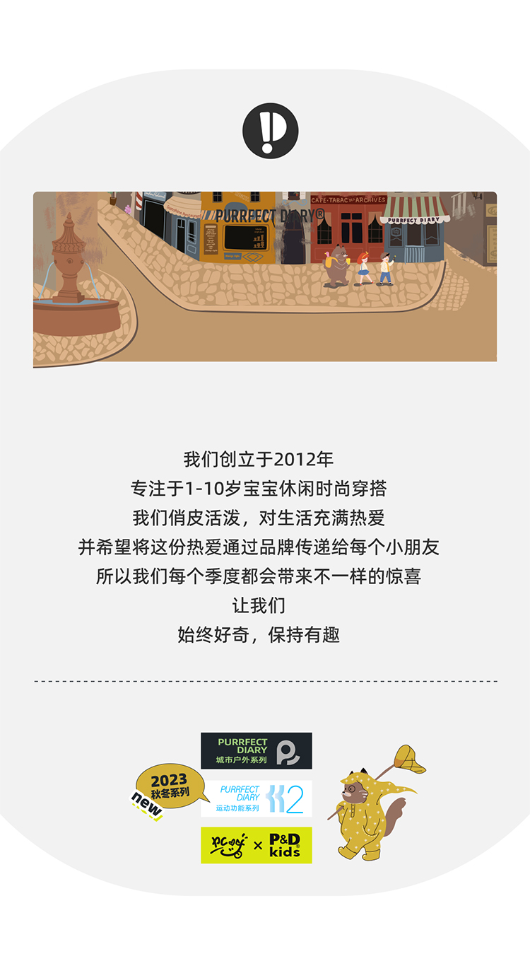 - Purrfect-Diary专注于贴近自然随性的穿着概念,轻奢平价的童装文化传播,在产品设计上更加注重婴童穿着的舒适性、安全性、更出众的国际化品牌,将欧美的育婴文化在中国进行深入的传播与推广。