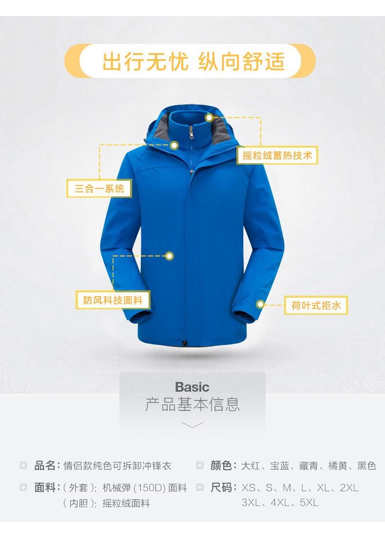 户外冲锋衣男女两件套三合一可拆卸抓绒衣接缝压胶防风防水登山服