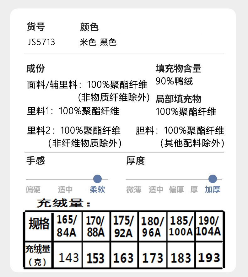 情侣款羽绒服JS5713