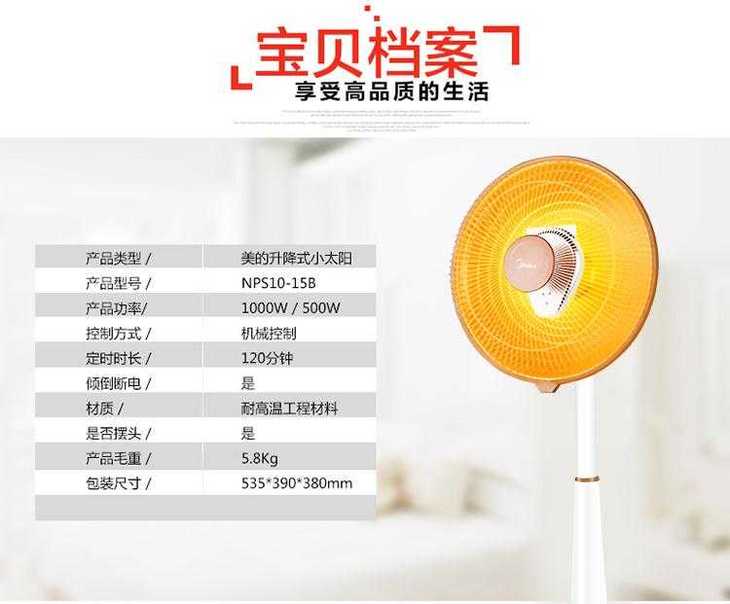 美的(Midea) (506137)NPS10-15B取暖器小太阳电暖器家用升降式落地电热风扇摇头速热烤火炉电暖炉