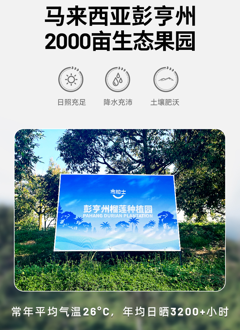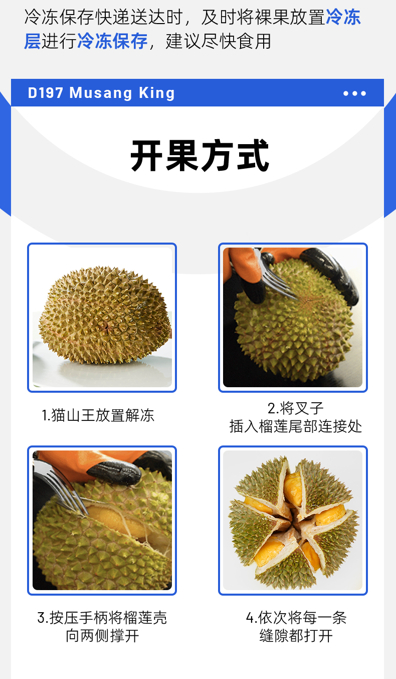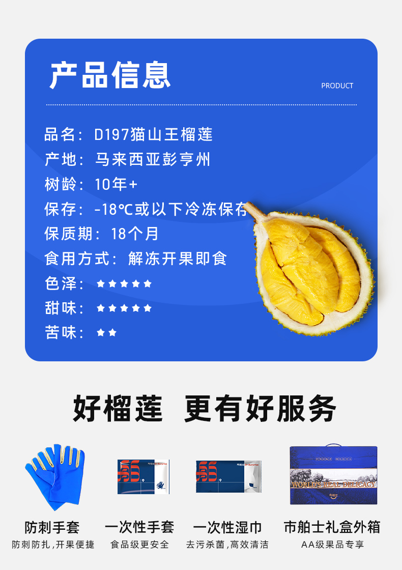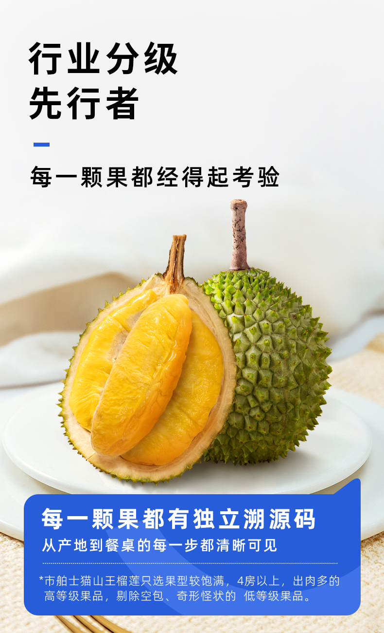 马来西亚彭亨州猫山王 新鲜水果液氮冷冻保鲜带壳榴莲D197整个