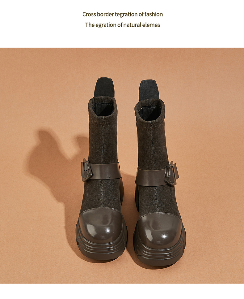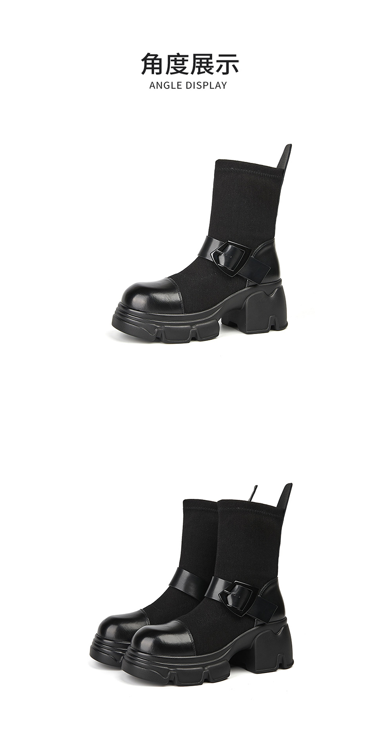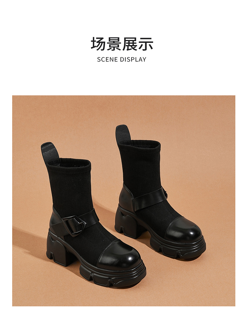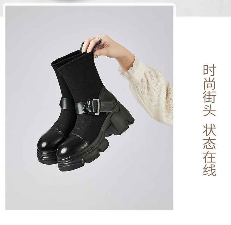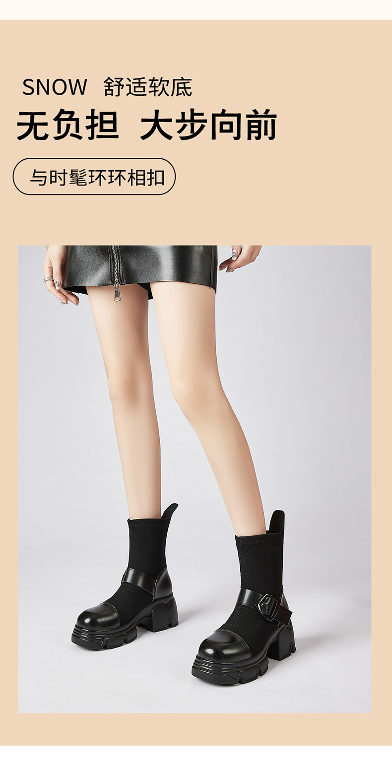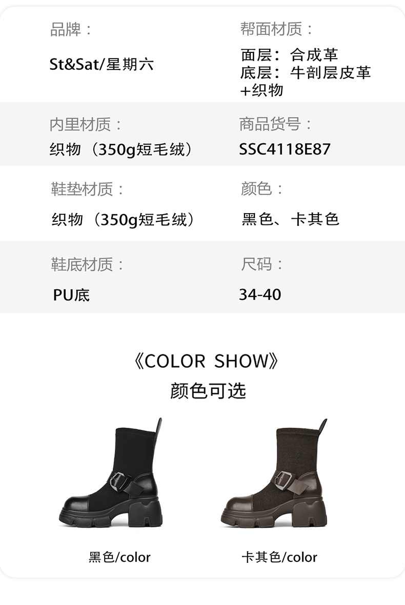 星期六时尚扣带弹力拼接厚底增高加绒瘦瘦靴SSC4118E87