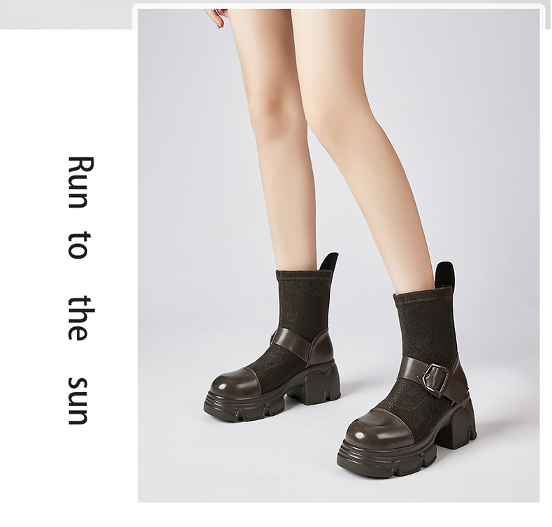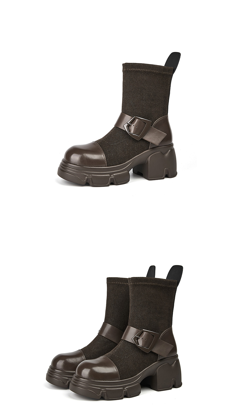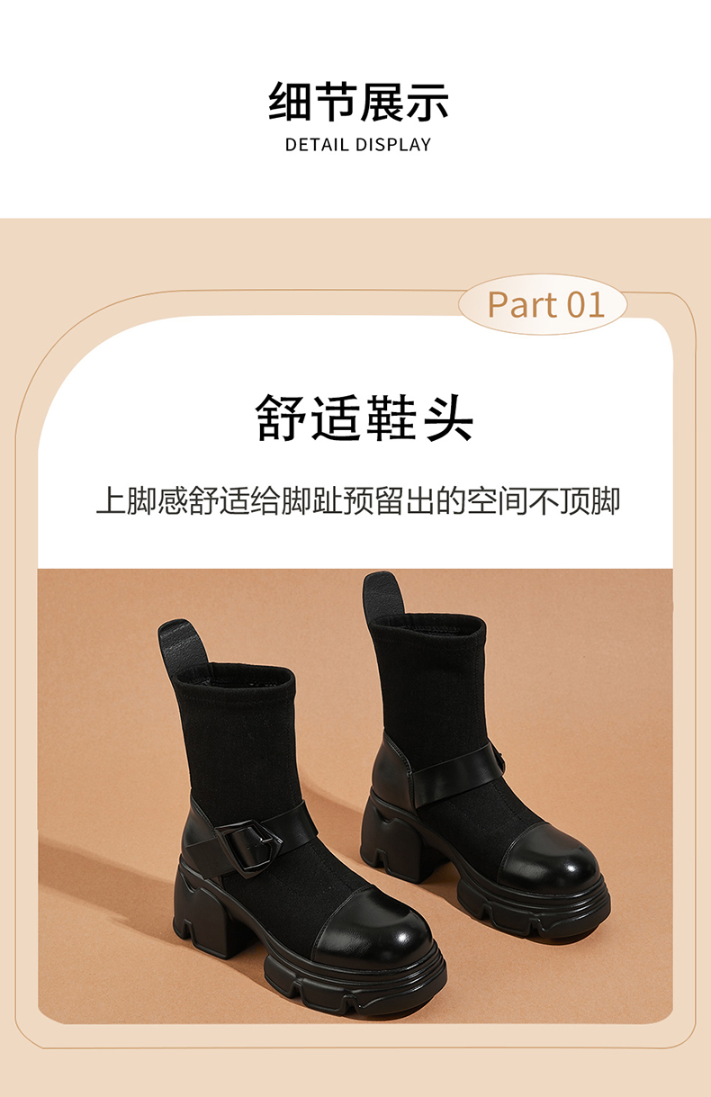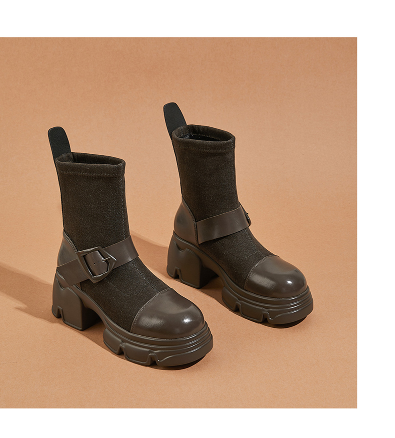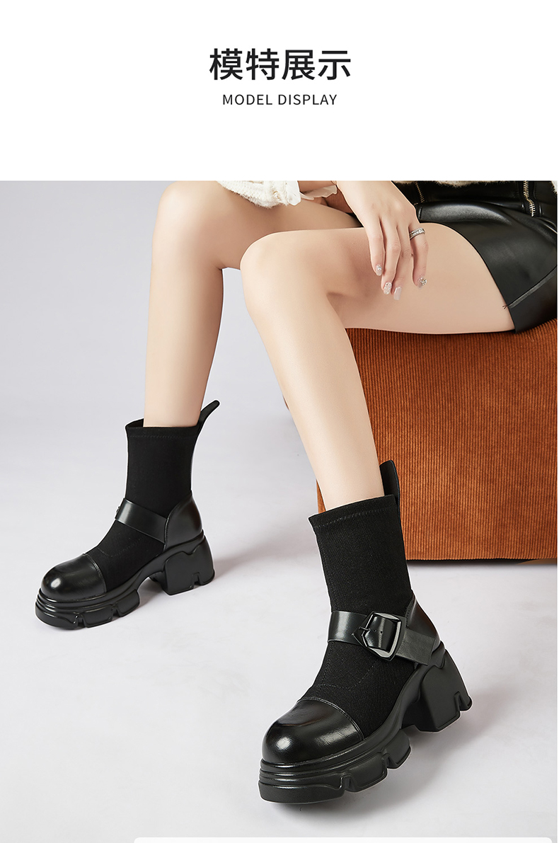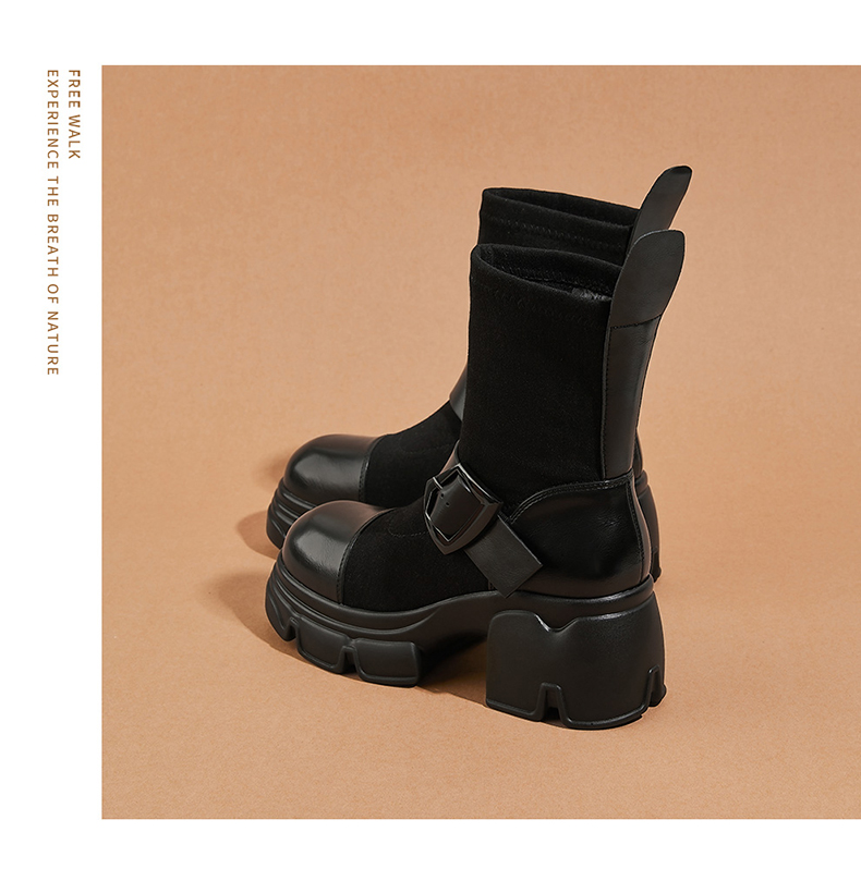 星期六时尚扣带弹力拼接厚底增高加绒瘦瘦靴SSC4118E87