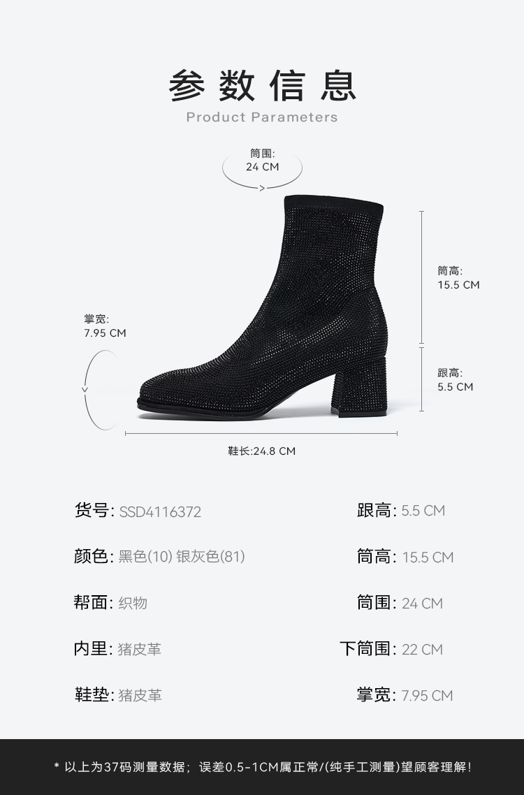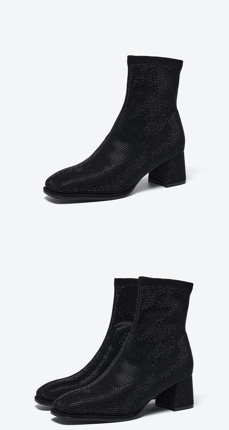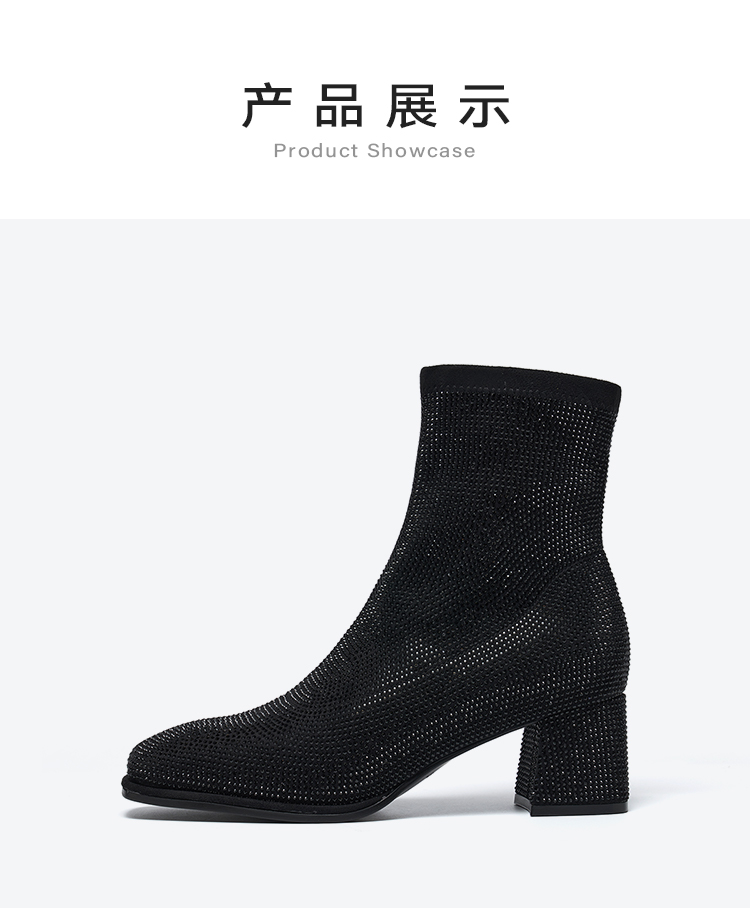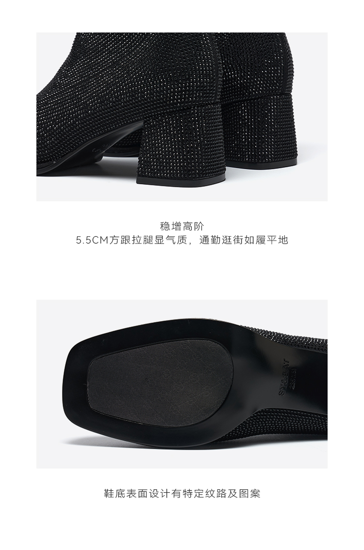 星期六精致闪钻粗跟时装短靴SSD4116372