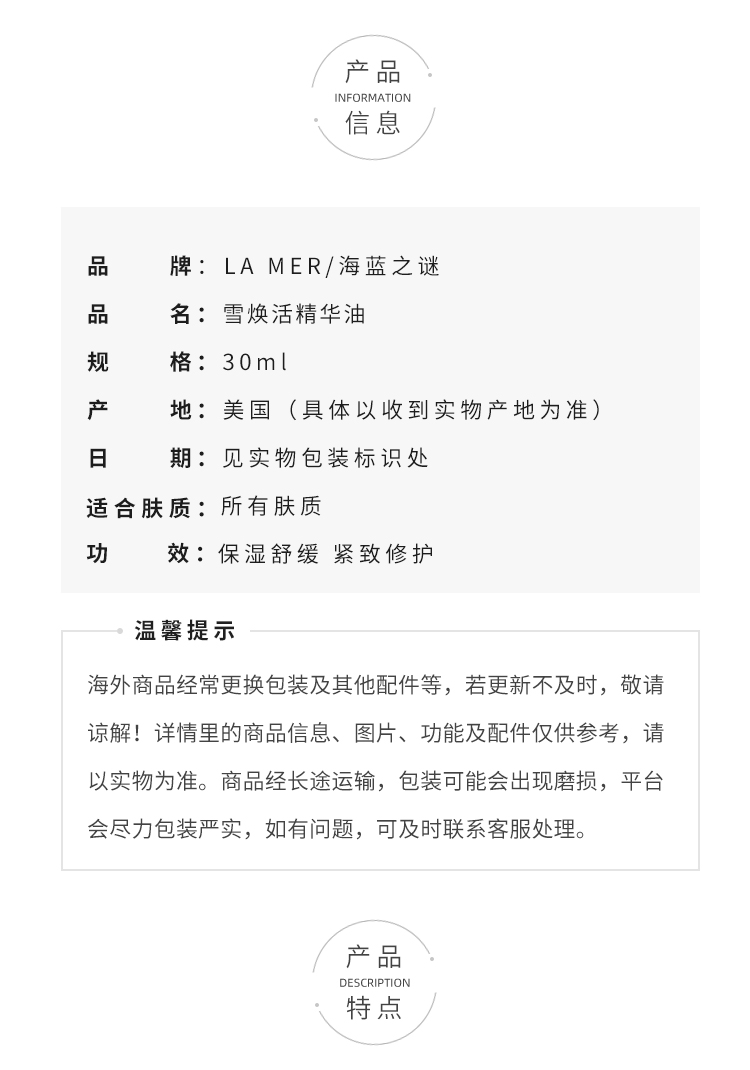 LAMER海蓝之谜臻璨焕活精华油30ml 再生万能油提亮修护滋养润肤 【CDF】