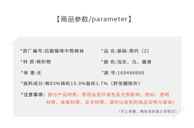 基础后跟猫咪中筒棉袜-简约-纪念日百货门店同款169446690