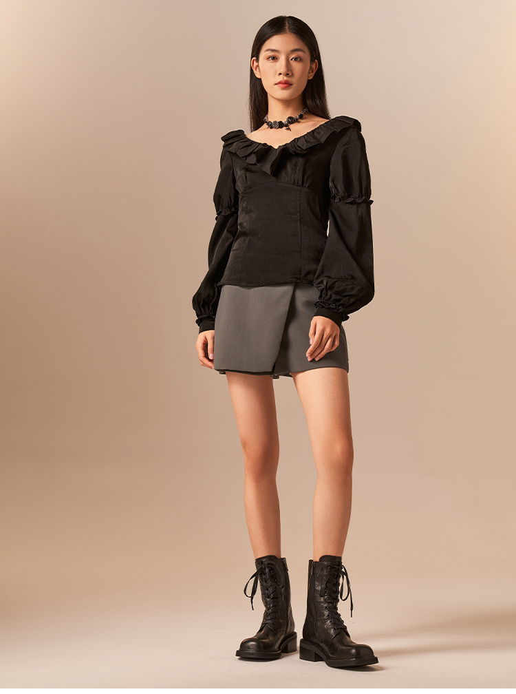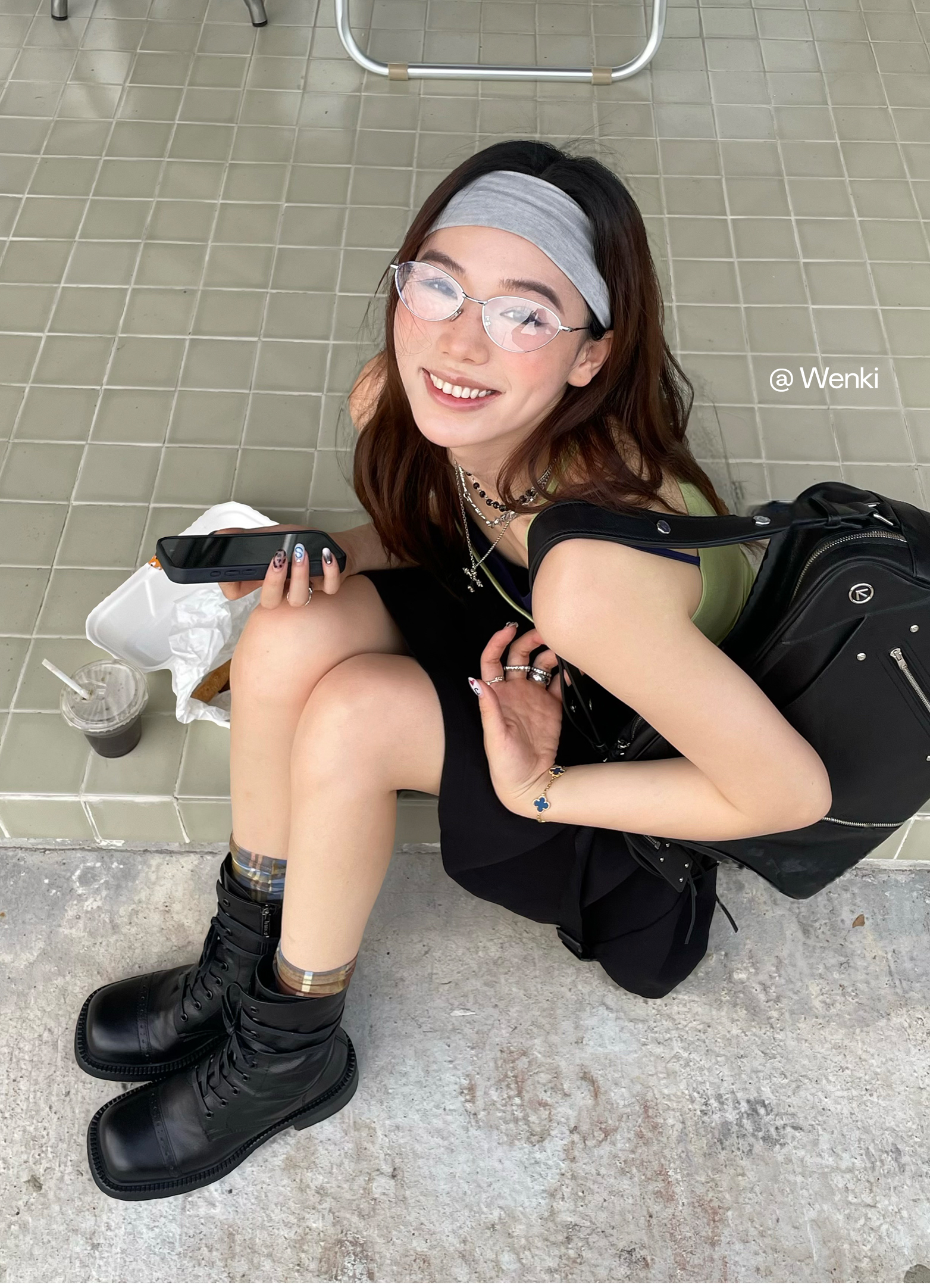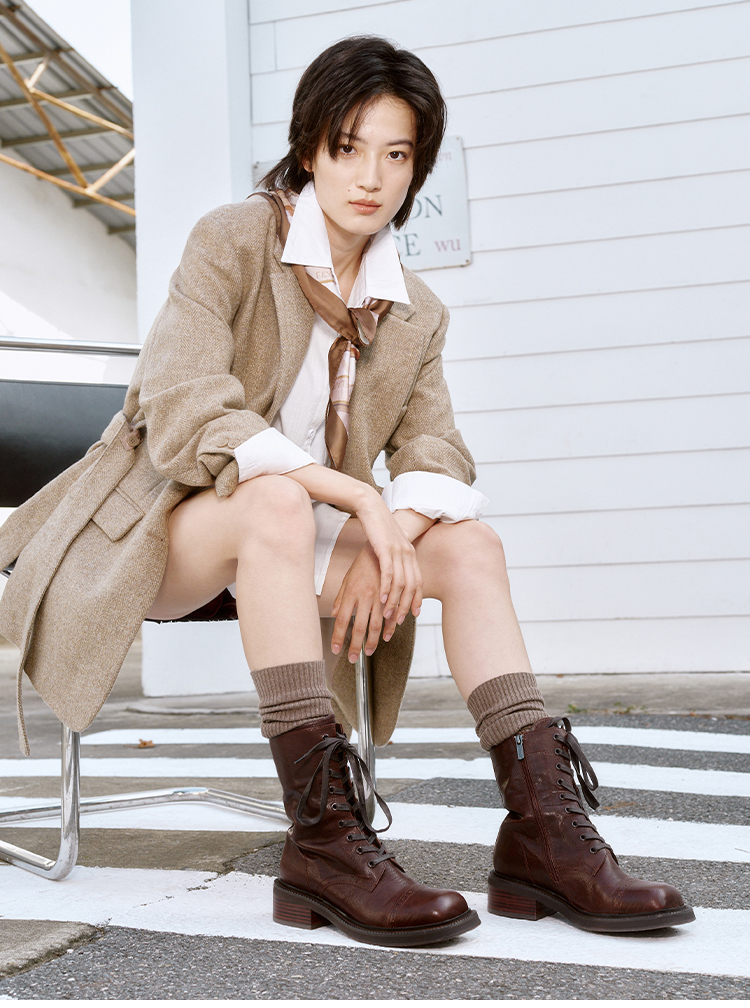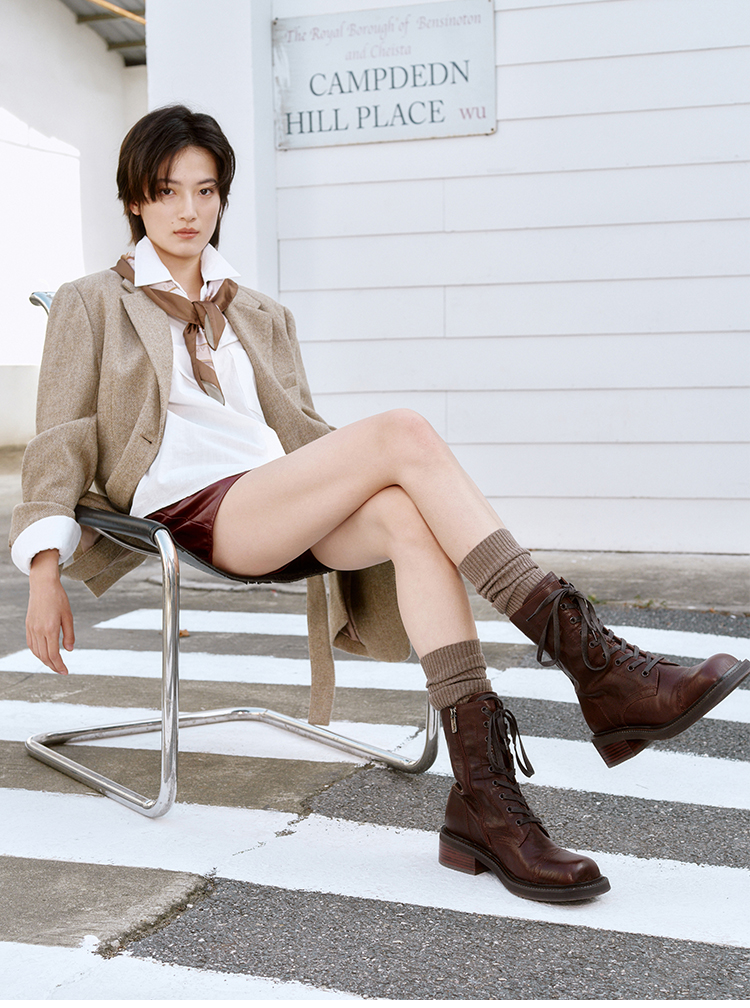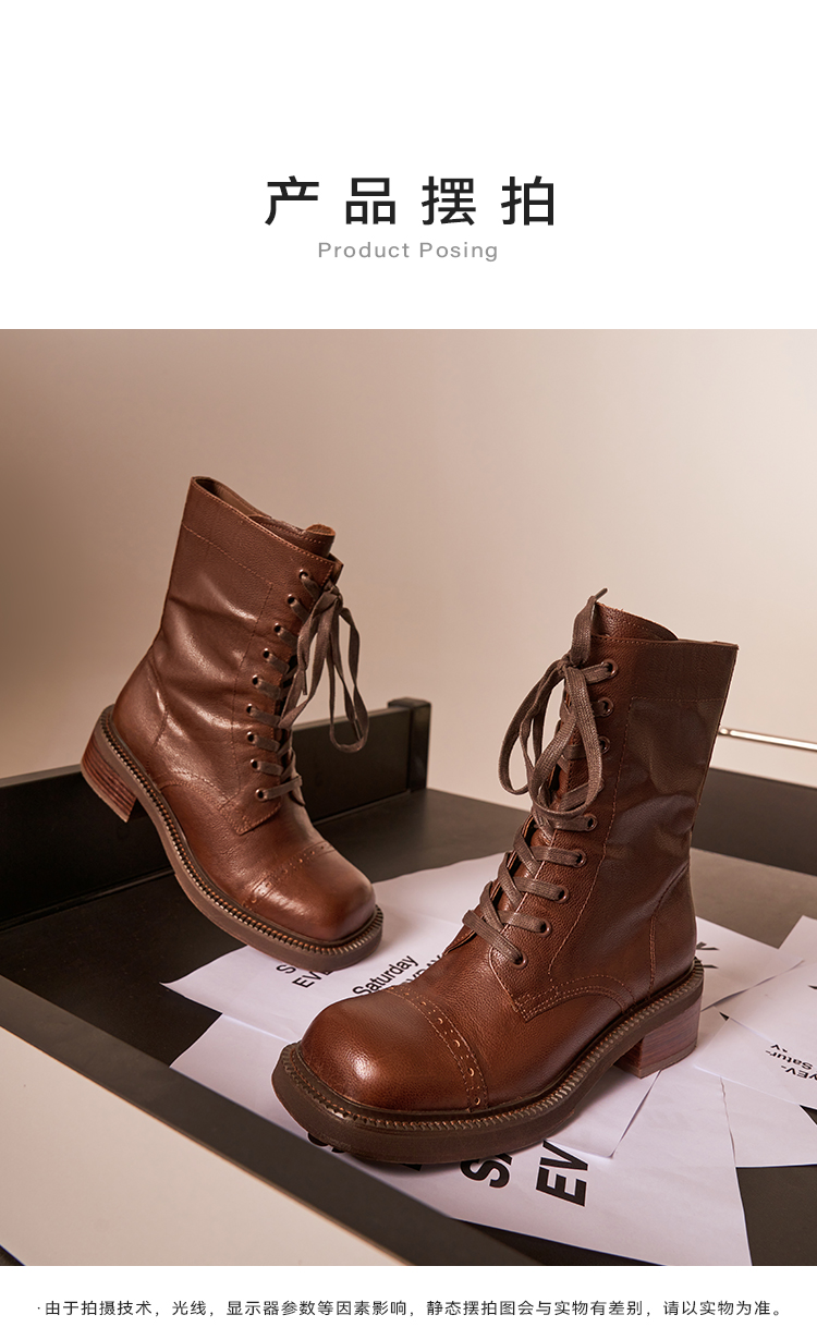 星期六复古褶皱感圆头厚底增高马丁靴SSC4116371