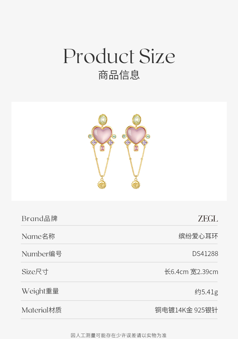 ZEGL设计师春夏缤纷系列粉色爱心耳环女2023年新款潮耳钉银针耳饰
