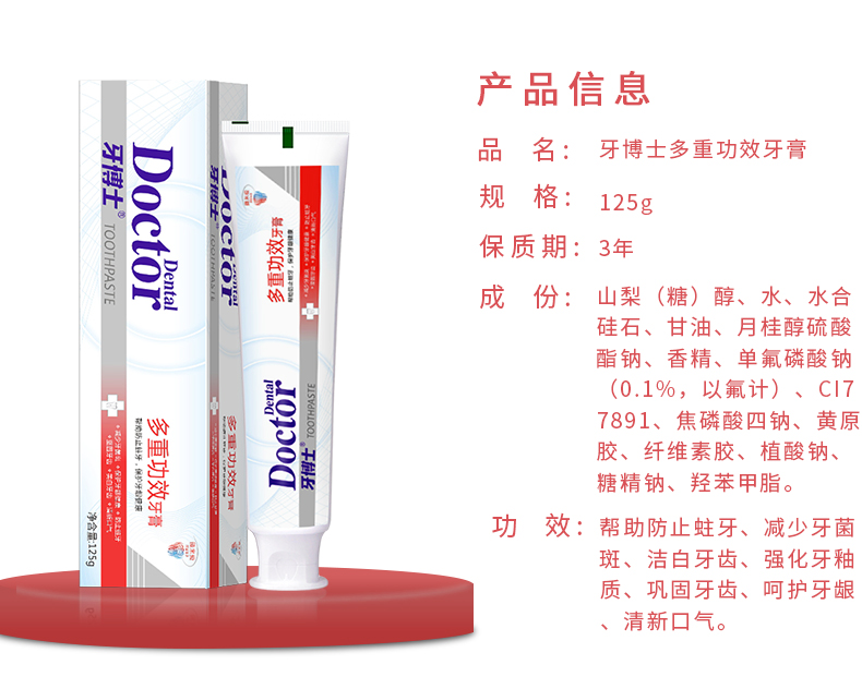 牙博士多重功效牙膏125g*3只装