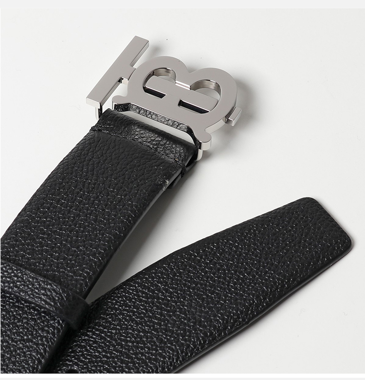 BURBERRY 博柏利 TB专属标识图案粒纹皮革腰带 男士腰带 黑色 8046542 A1189