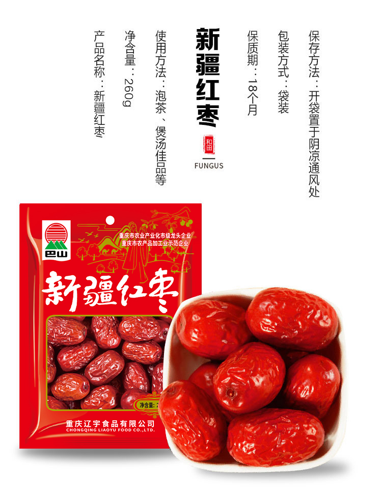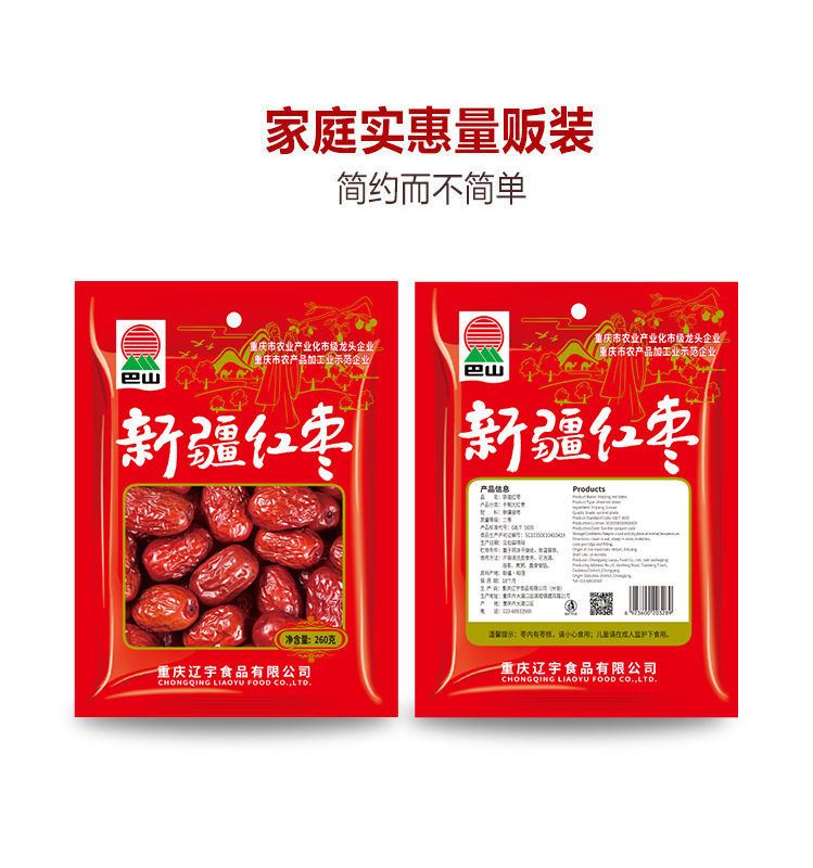 巴山新疆红枣260g 和田红枣干骏枣零食非免洗新枣 精选新疆大枣