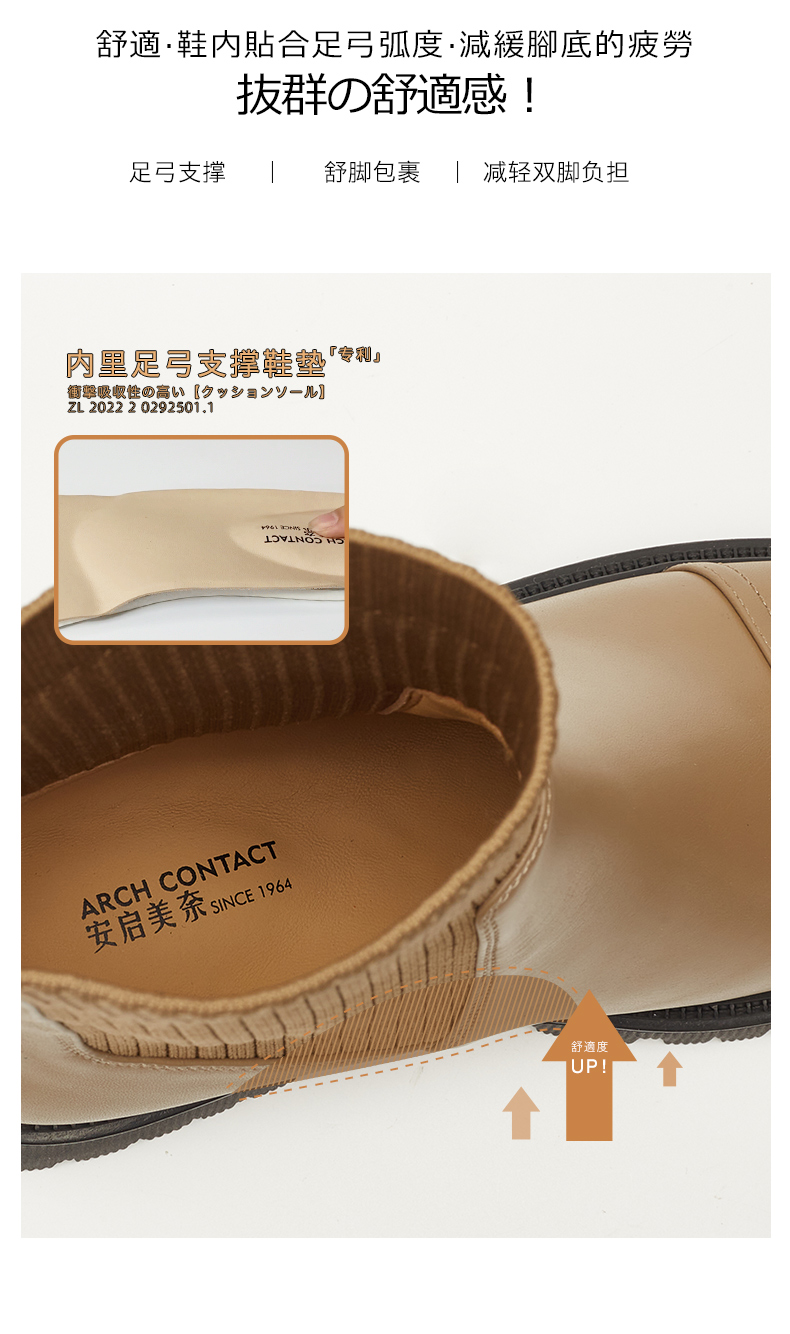 ARCHCONTACT安启美奈足弓气垫云复古英伦风一脚蹬乐福鞋53001