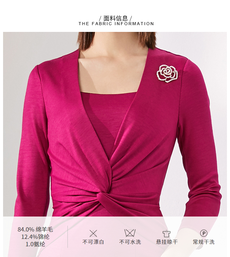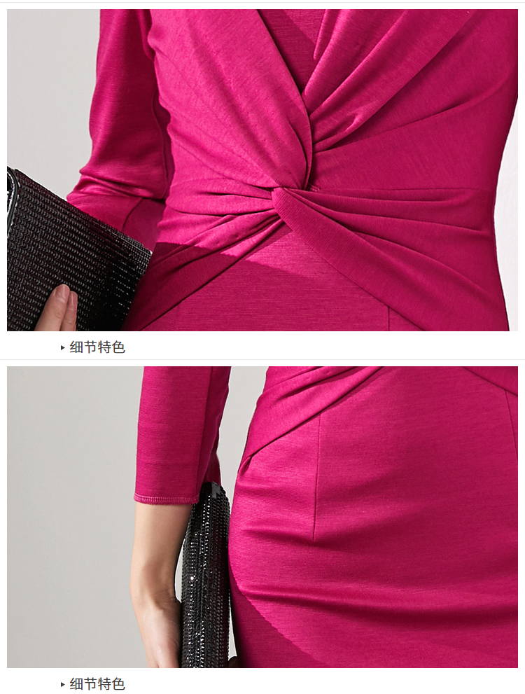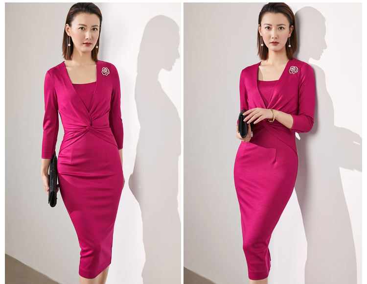 “微光玫瑰”颈袖添香-连衣裙-J20384569A 装新款通勤修身女士气质时尚名媛长袖职场包臀连衣裙