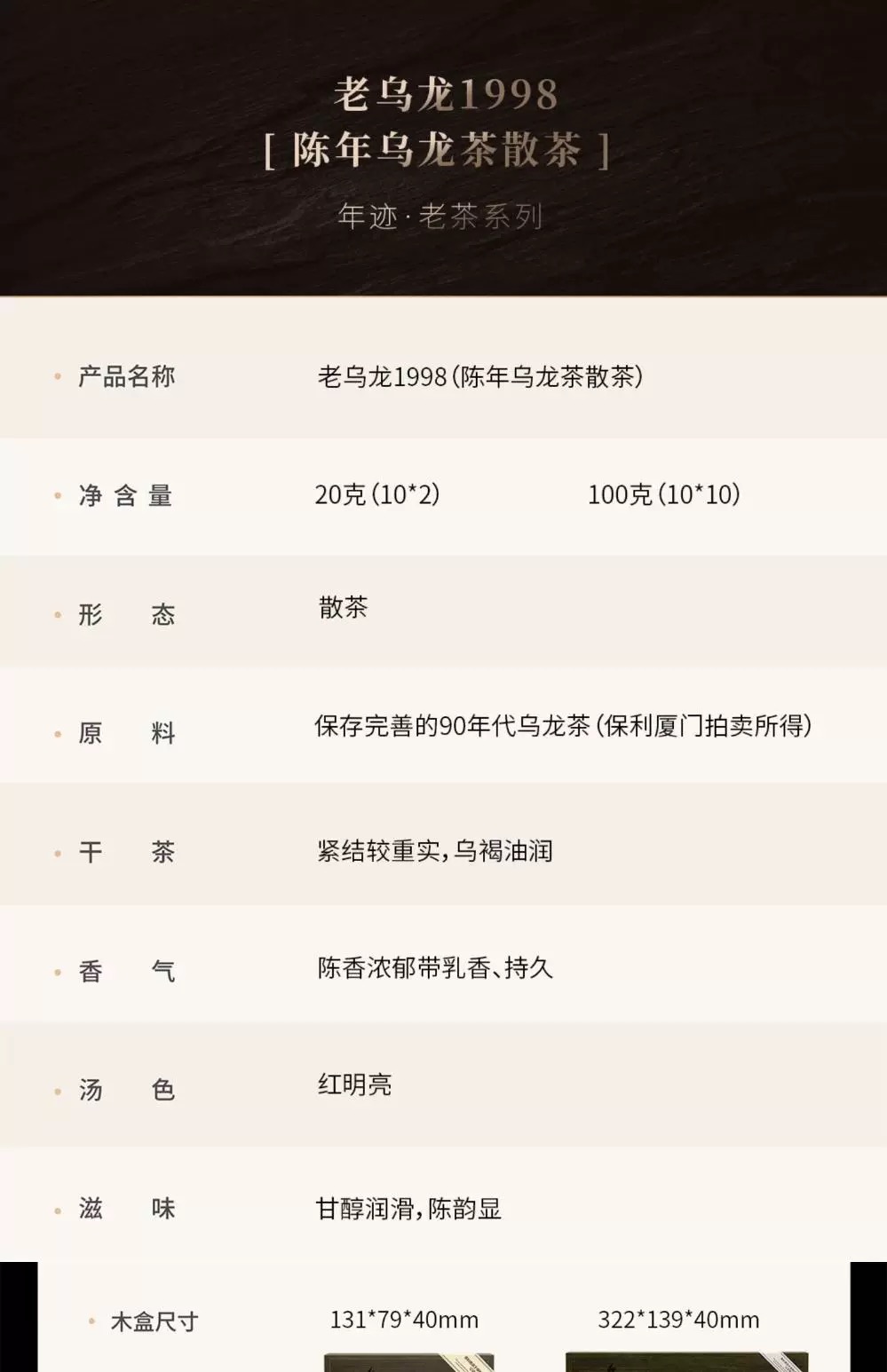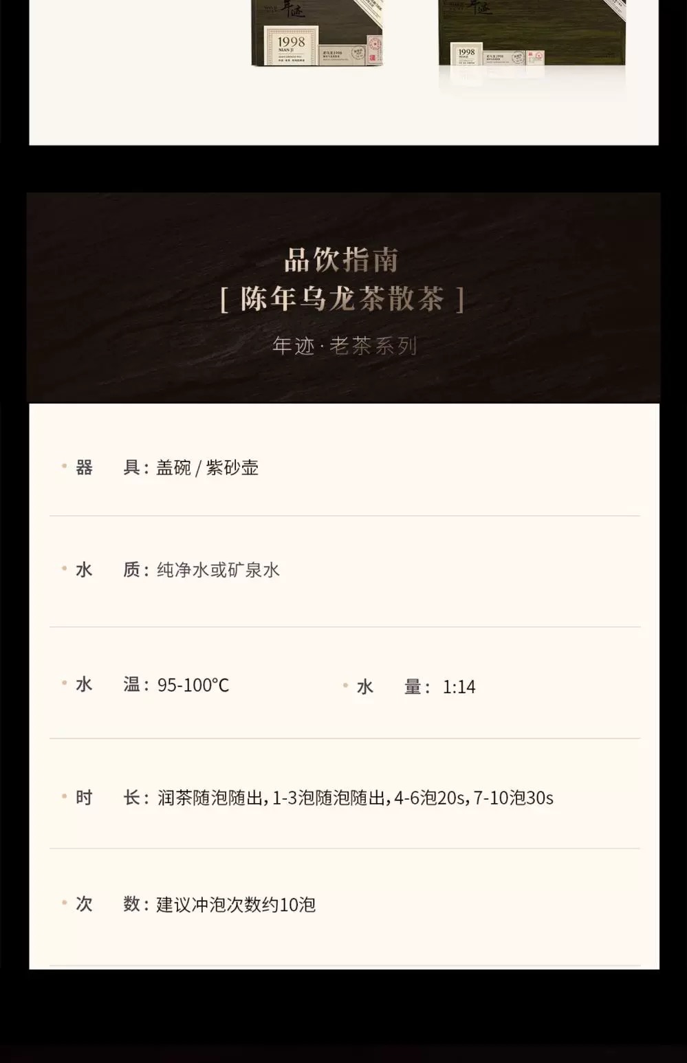 小罐茶【年迹老茶】老乌龙1998陈年乌龙茶散茶礼盒装20g两泡装100g十泡装