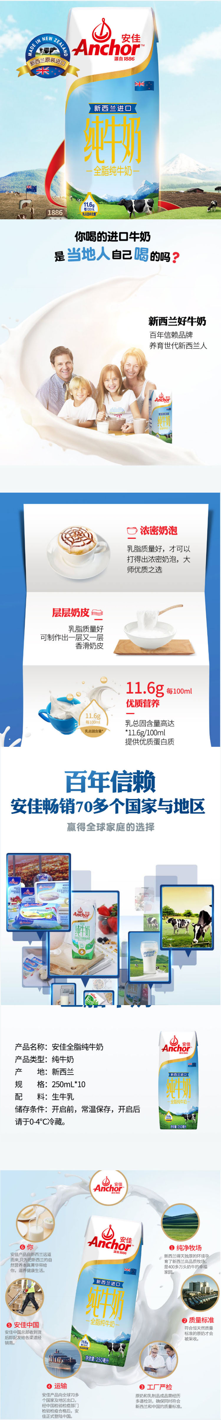 【快递代发】安佳新西兰进口全脂牛奶礼盒250ml*10