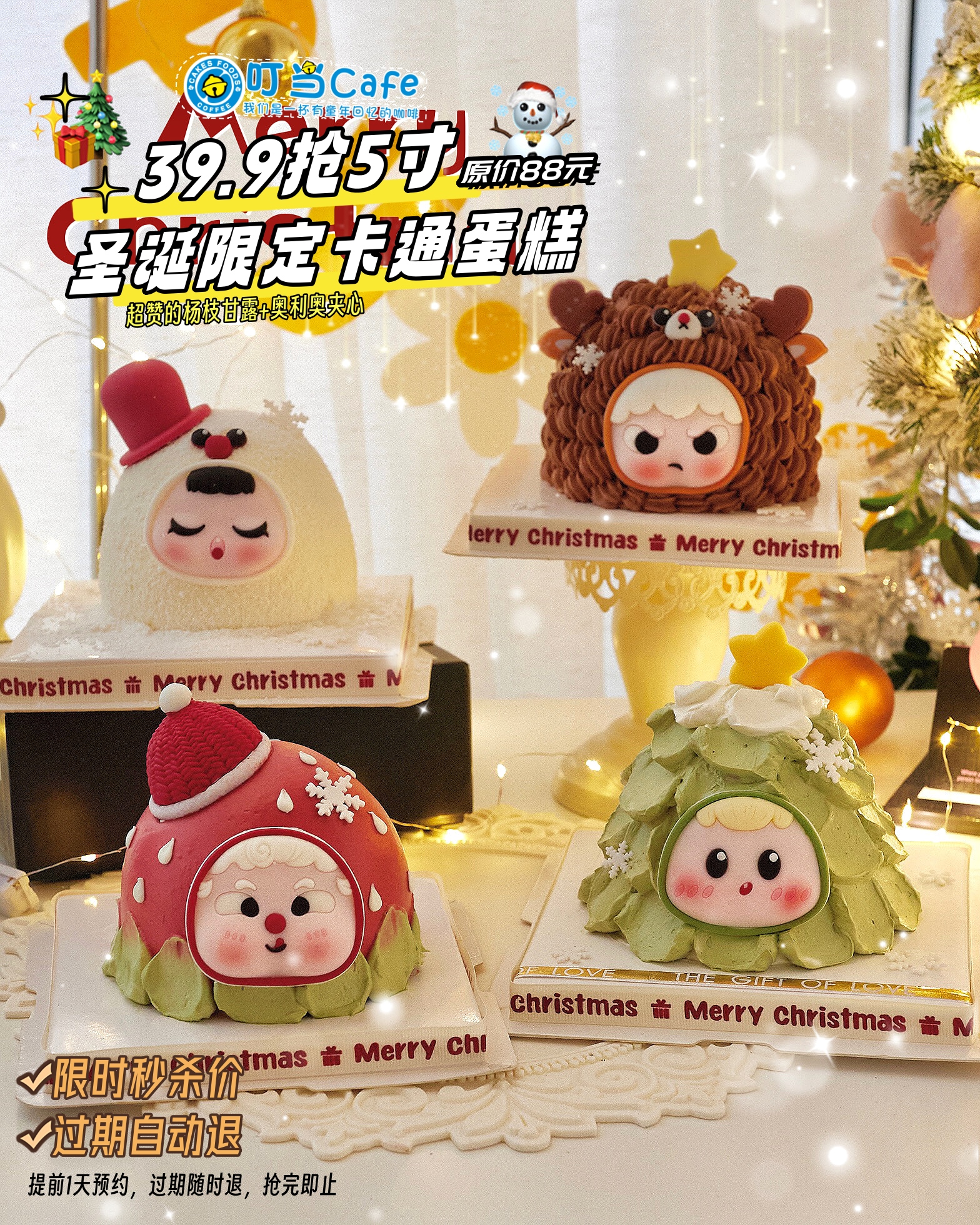(卡劵)【圣诞限定】39.9元半价抢圣诞限定卡通蛋糕-四款式可选/随时退/提前预约使用