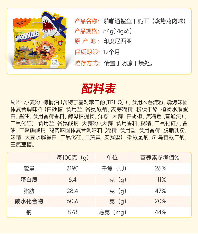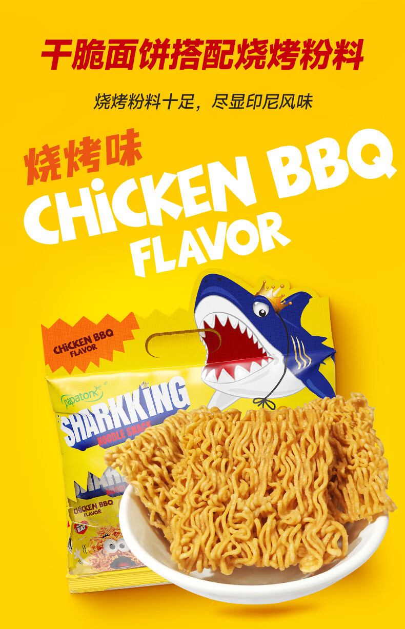 (9.4客服通知下架)JDY啪啪通(Papatonk) 鲨鱼干脆面烧烤味袋装84g*2袋