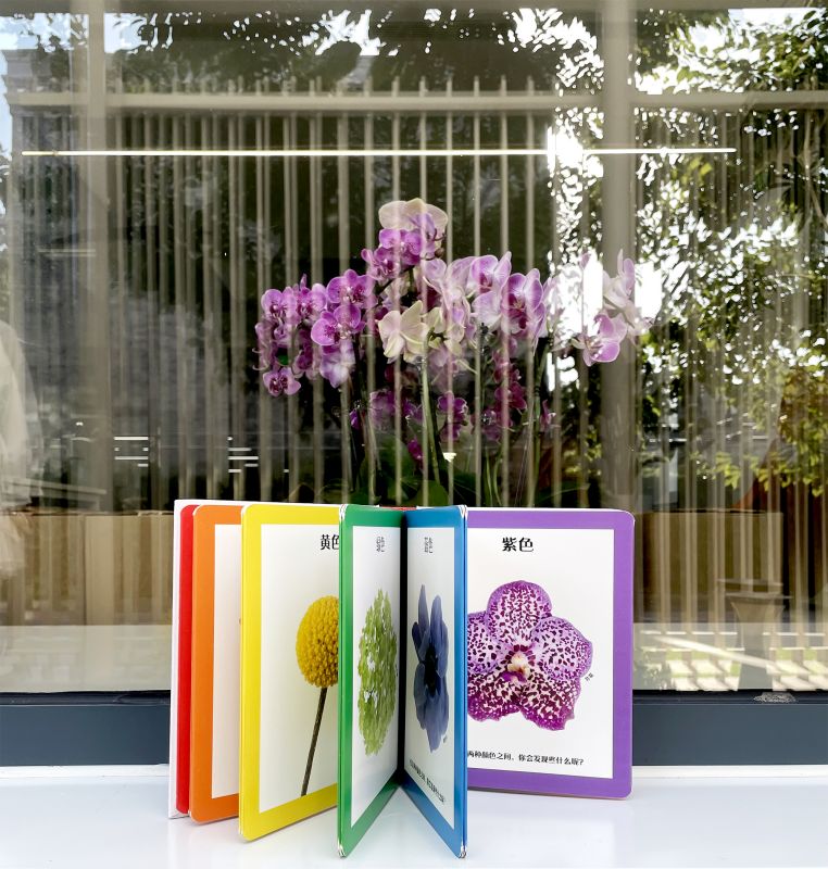 这本书开创性地用花朵颜色的过渡,自然而巧妙地展示颜色的渐变,聪明地引入渐变色的概念。鲜亮多样的渐变色可以给孩子更多的想象空间,而精美的花艺作品有助于提高孩子的审美能力。