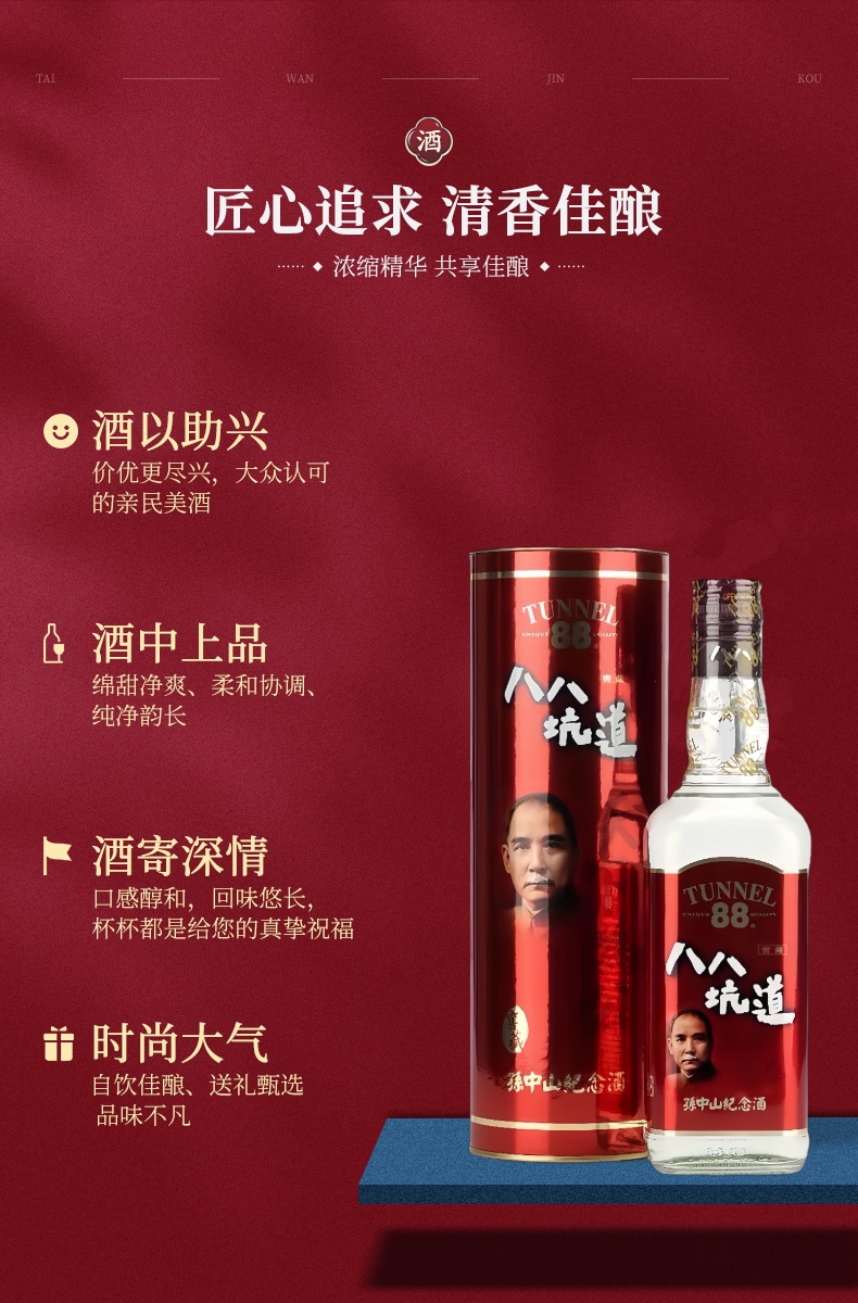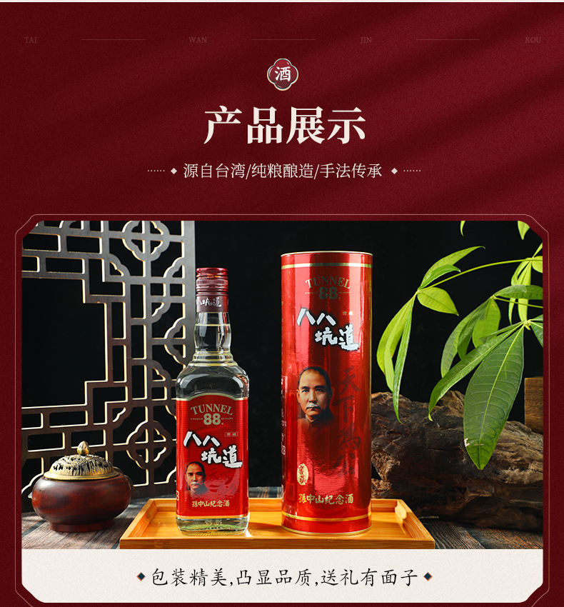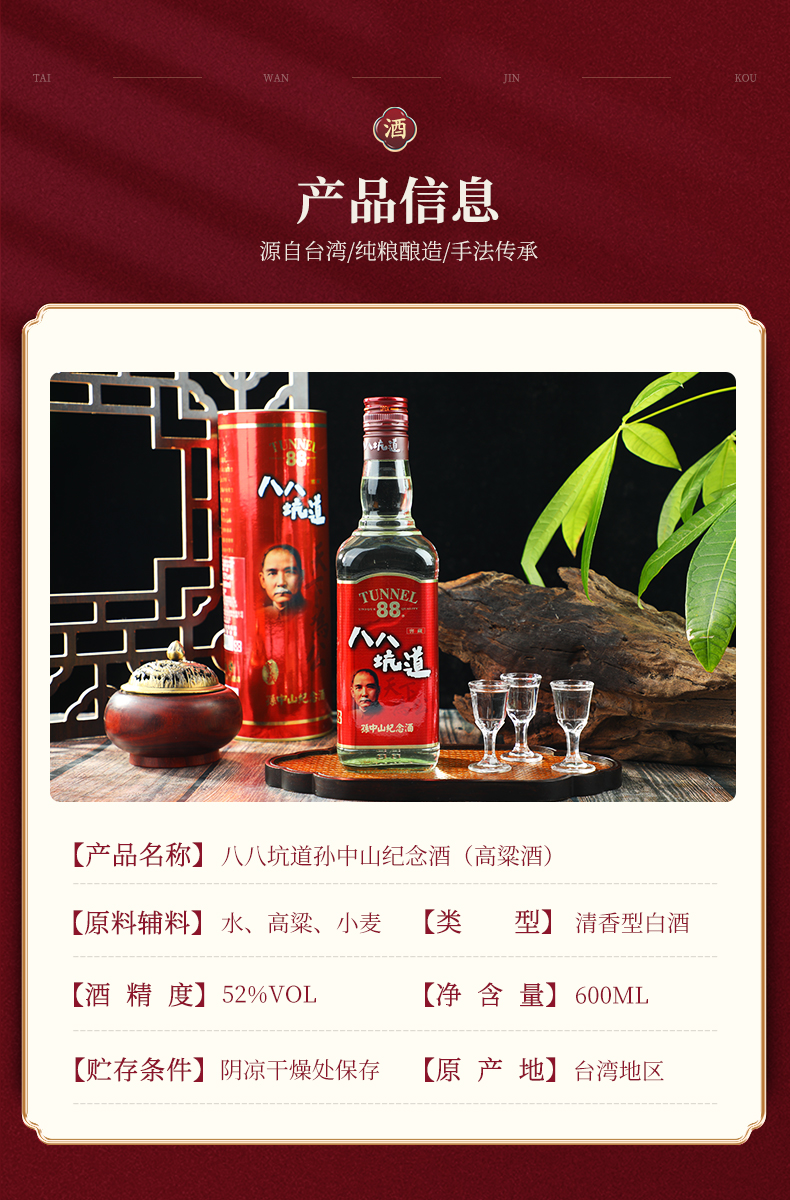 自营(耀金台)-八八坑道台湾经典白酒52°孙中山纪念酒(桶装)600ml/瓶