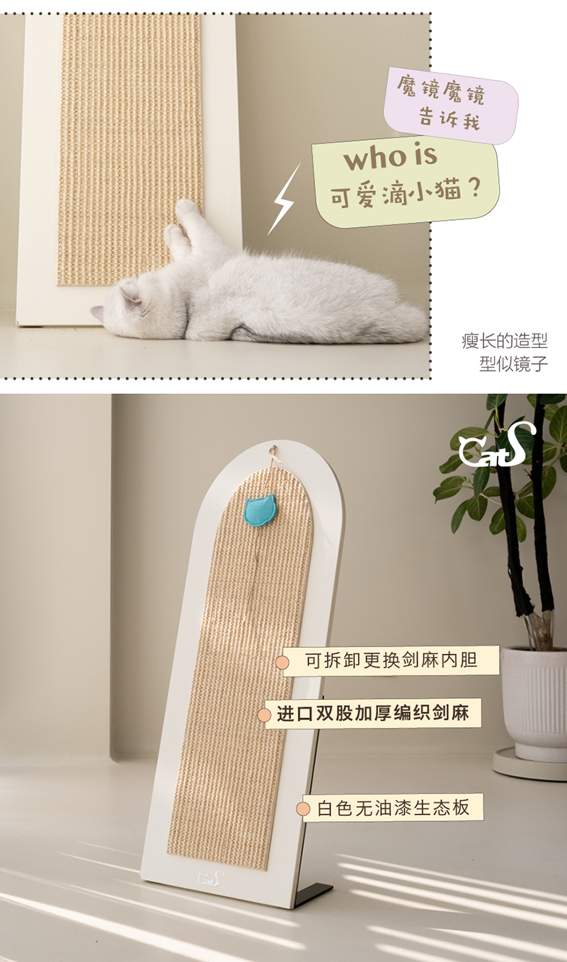 CatS魔镜立式猫抓板 大号天然剑麻猫床猫玩具实木猫家具