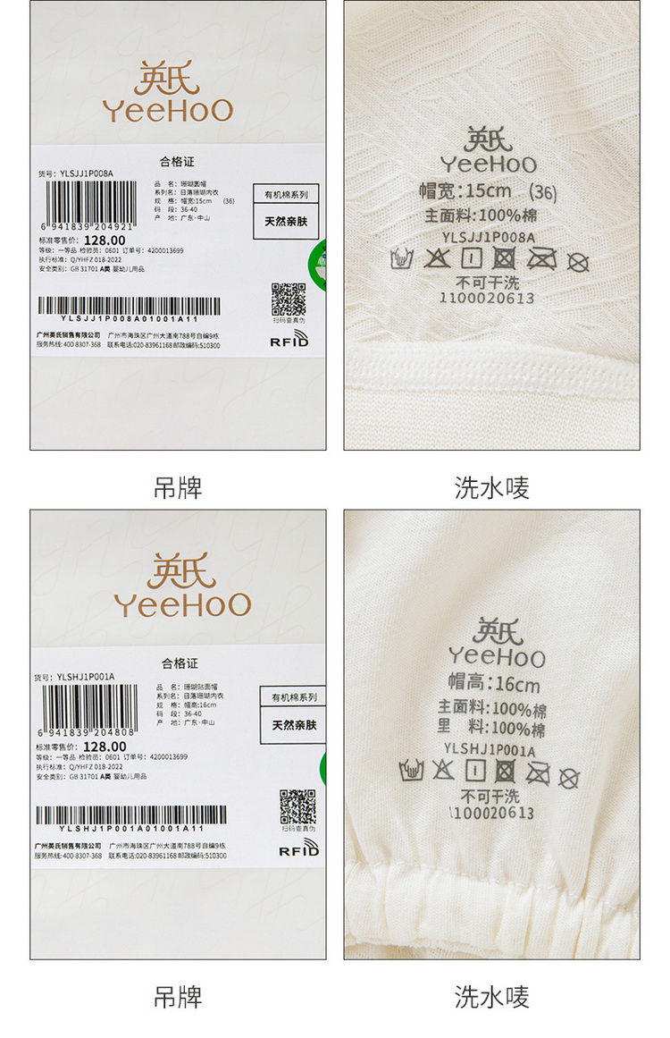 英氏儿童帽子男宝女宝贴面帽胎帽2023春夏新款YLSJJ1P008A