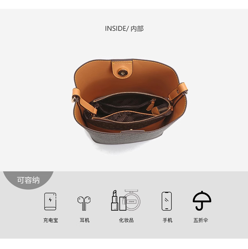 《WHY》水桶包女士2025春夏新款时尚女包简约百搭单肩包复古斜挎包包YAP11313