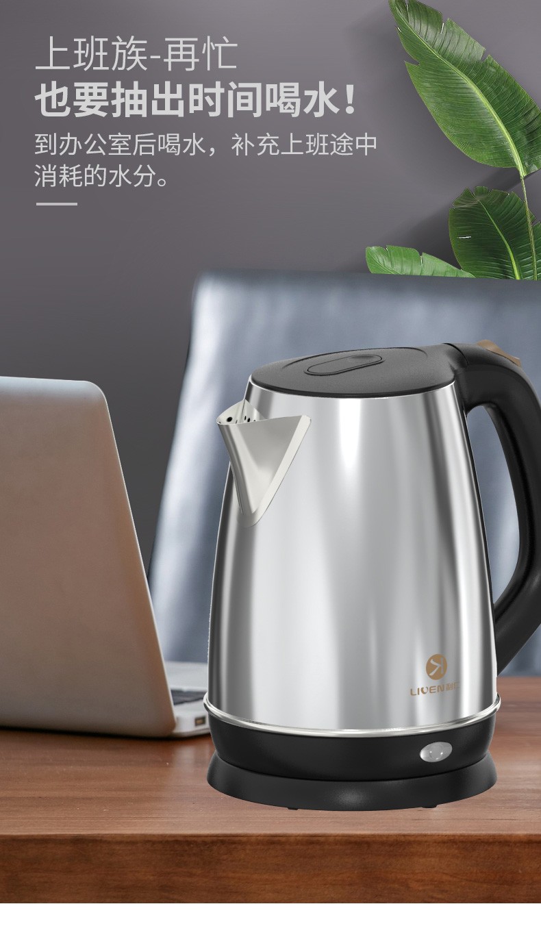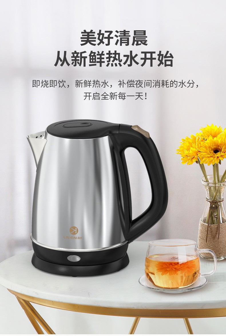 利仁(Liven)电水壶热水壶烧水壶1.8L大容量双层防烫304不锈钢无缝全钢智能断电LPSH-79