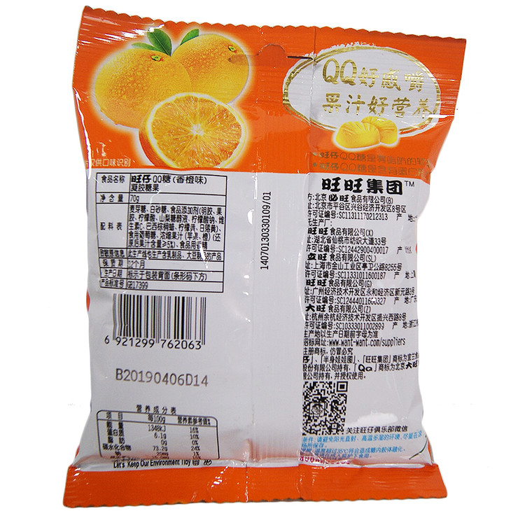 商品名称:旺仔QQ糖香橙味