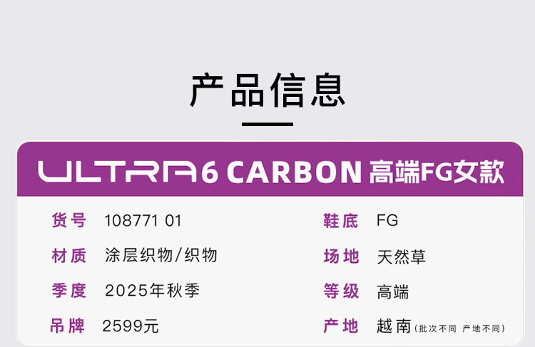 小李子PUMA彪马ULTRA 6高端FG长钉训练足球鞋成人女款108771 01