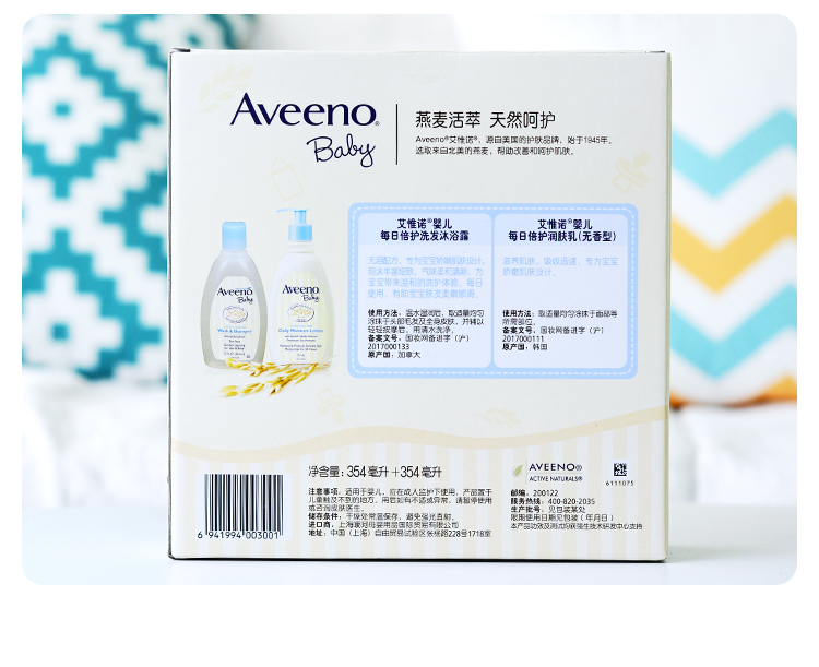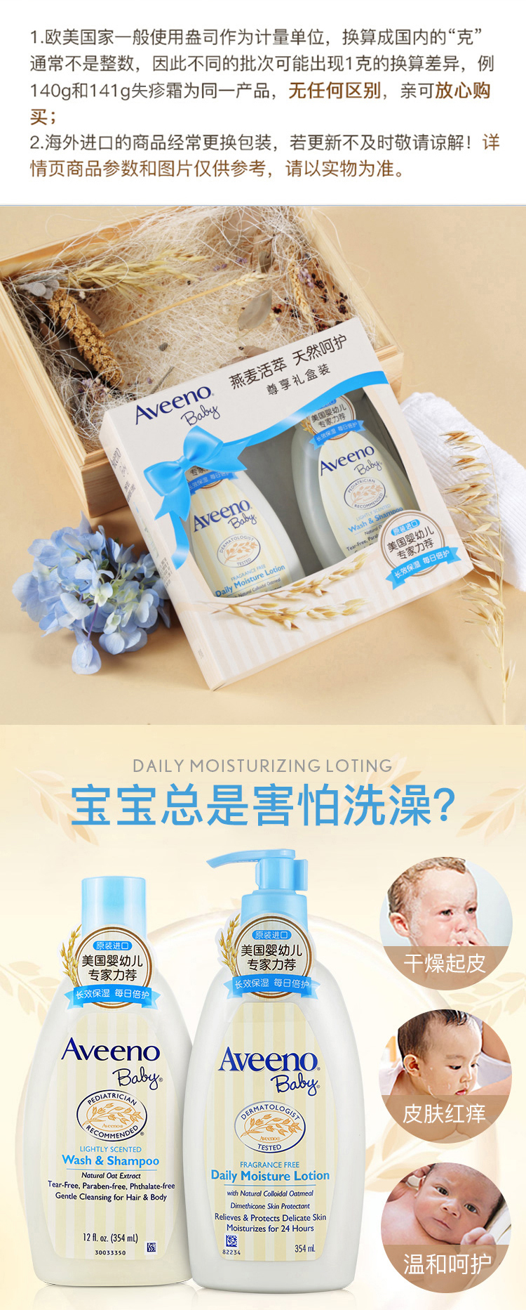 艾惟诺Aveeno艾维诺婴儿洗护礼盒宝宝(洗发沐浴露+润肤乳)专柜版