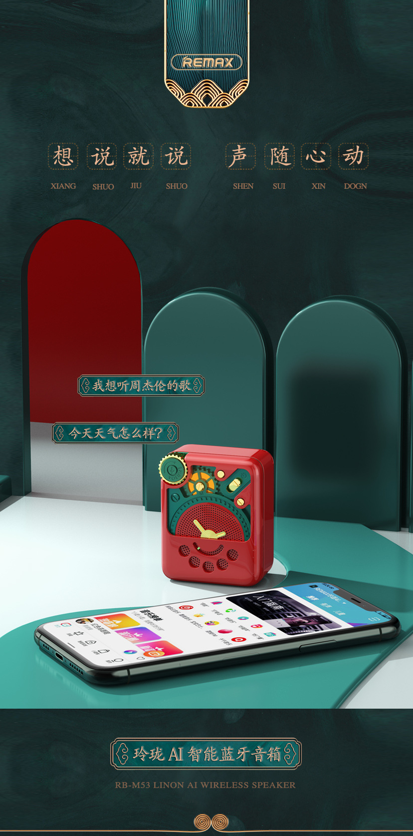 REMAX睿量玲珑AI智能蓝牙音箱RB-M53(颜色随机)