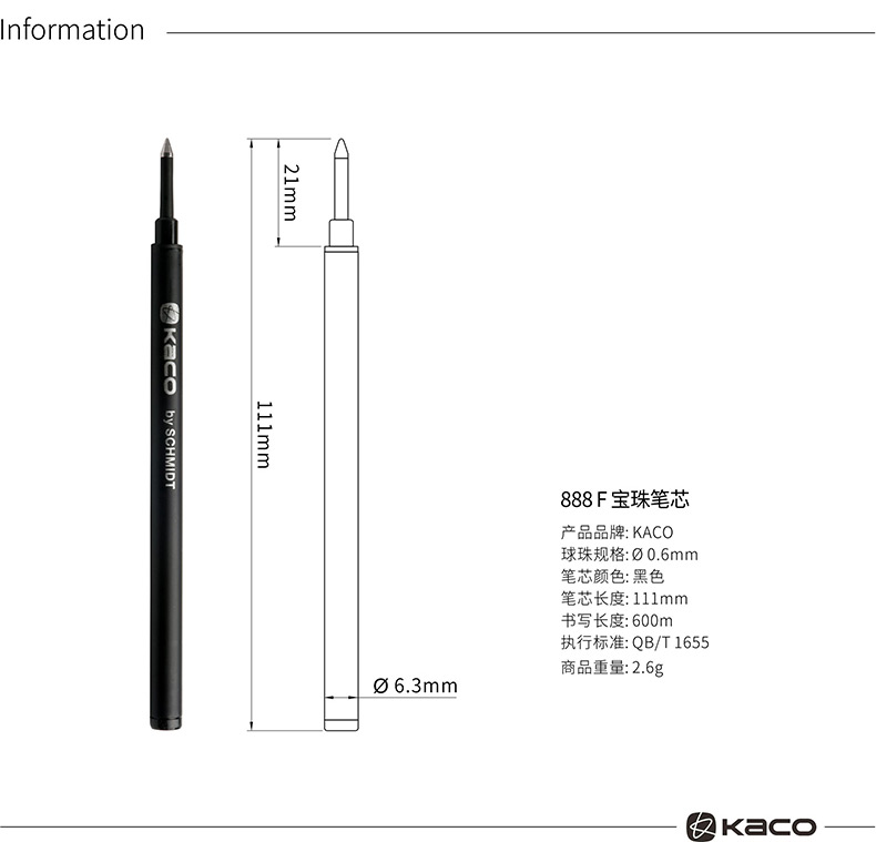 文采宝珠笔芯(吸卡装)888F黑色办公学生考试学习用品替芯