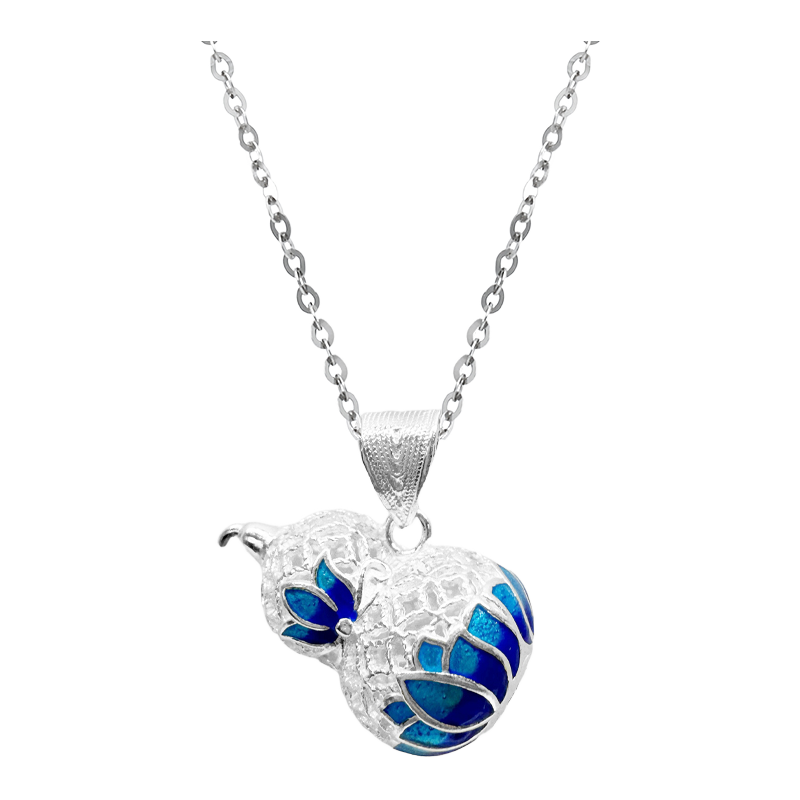 | 足银珐琅镂空莲花福禄项链(蓝色) | 足银 克重:3.9g |