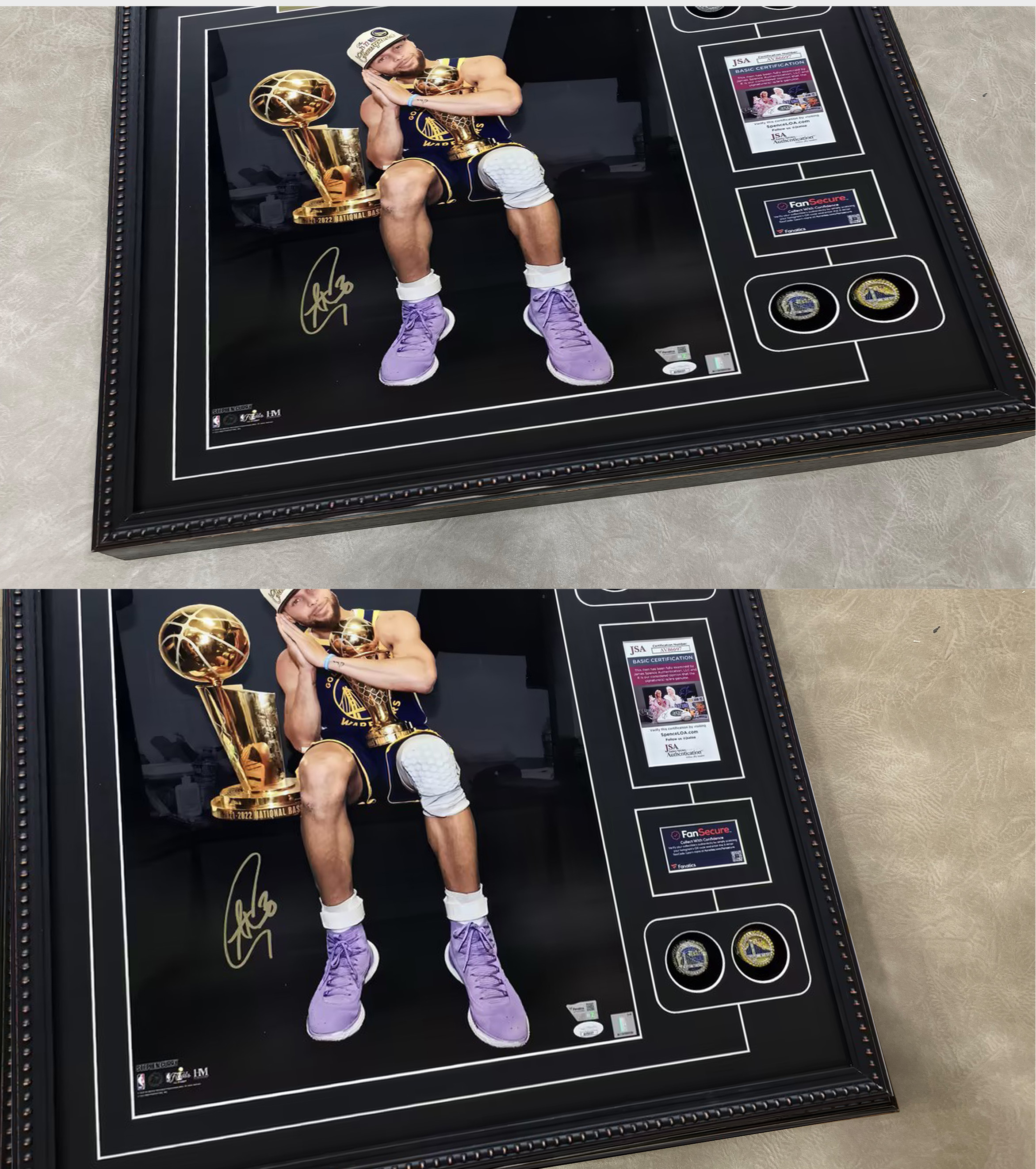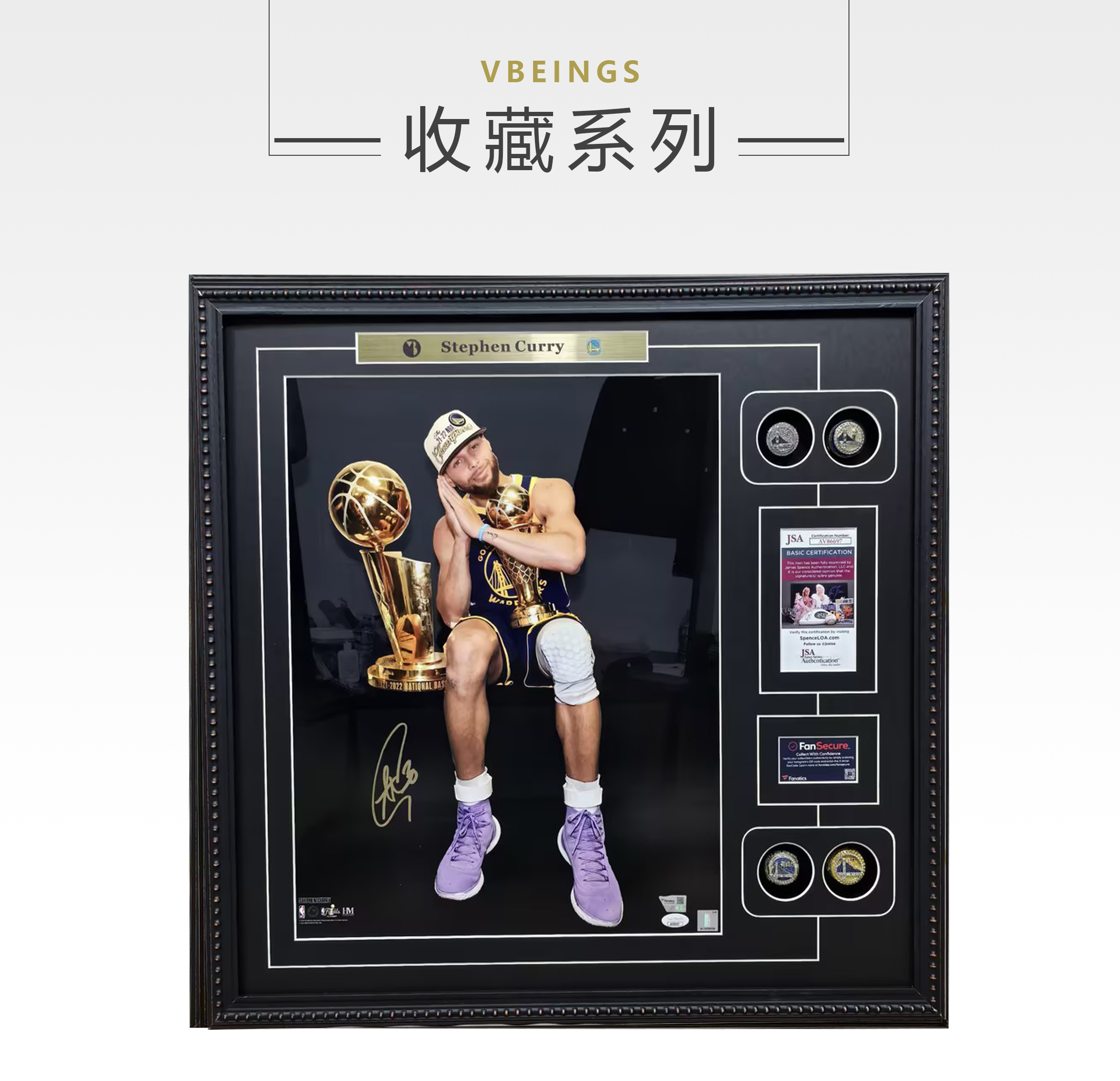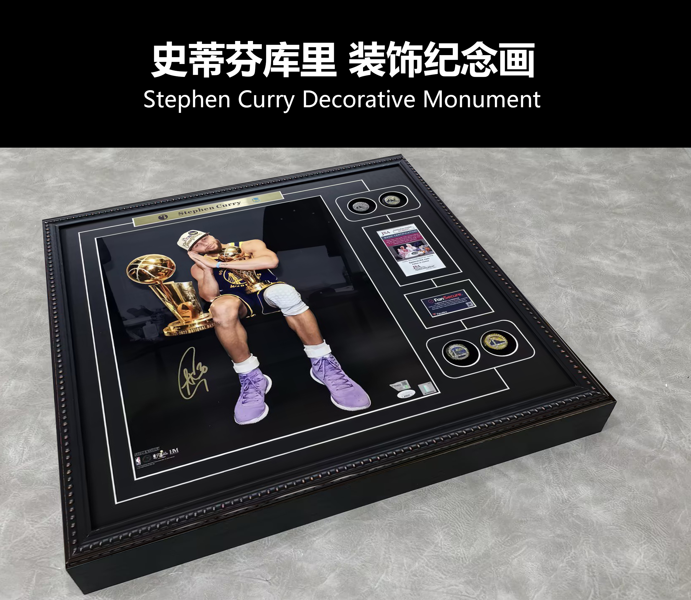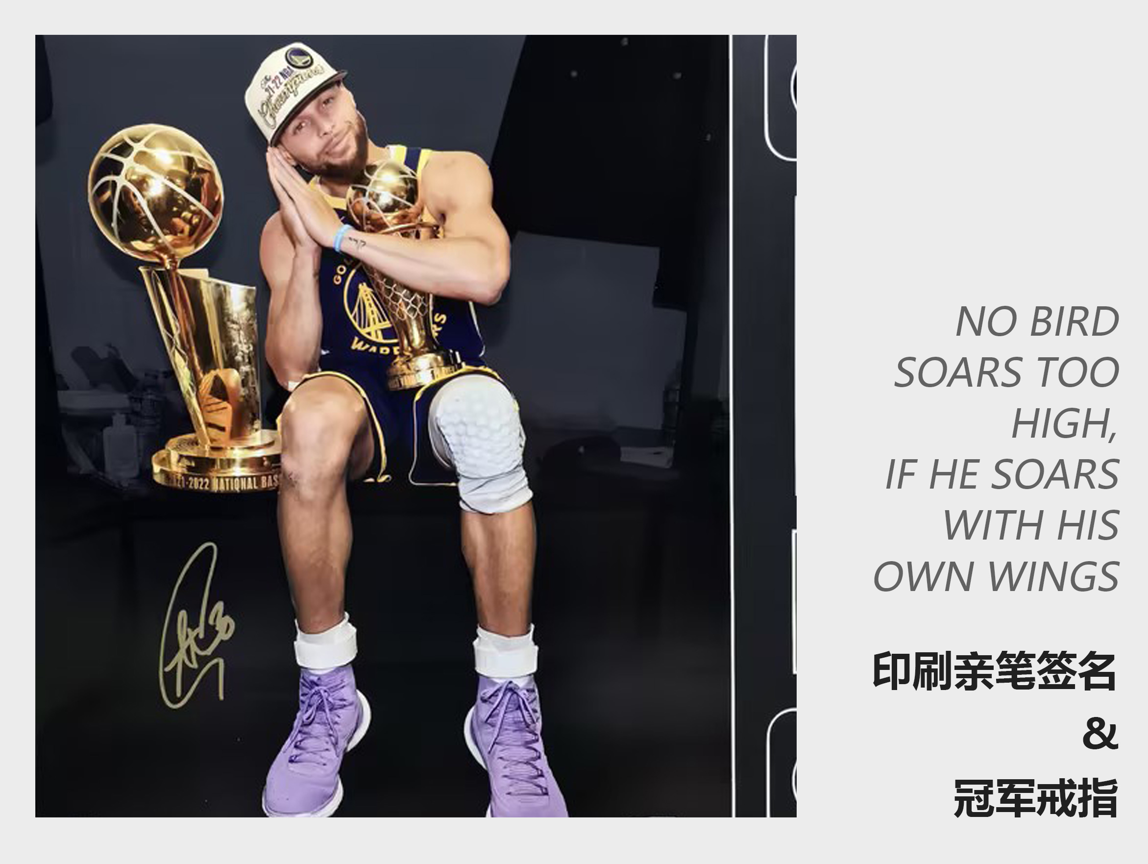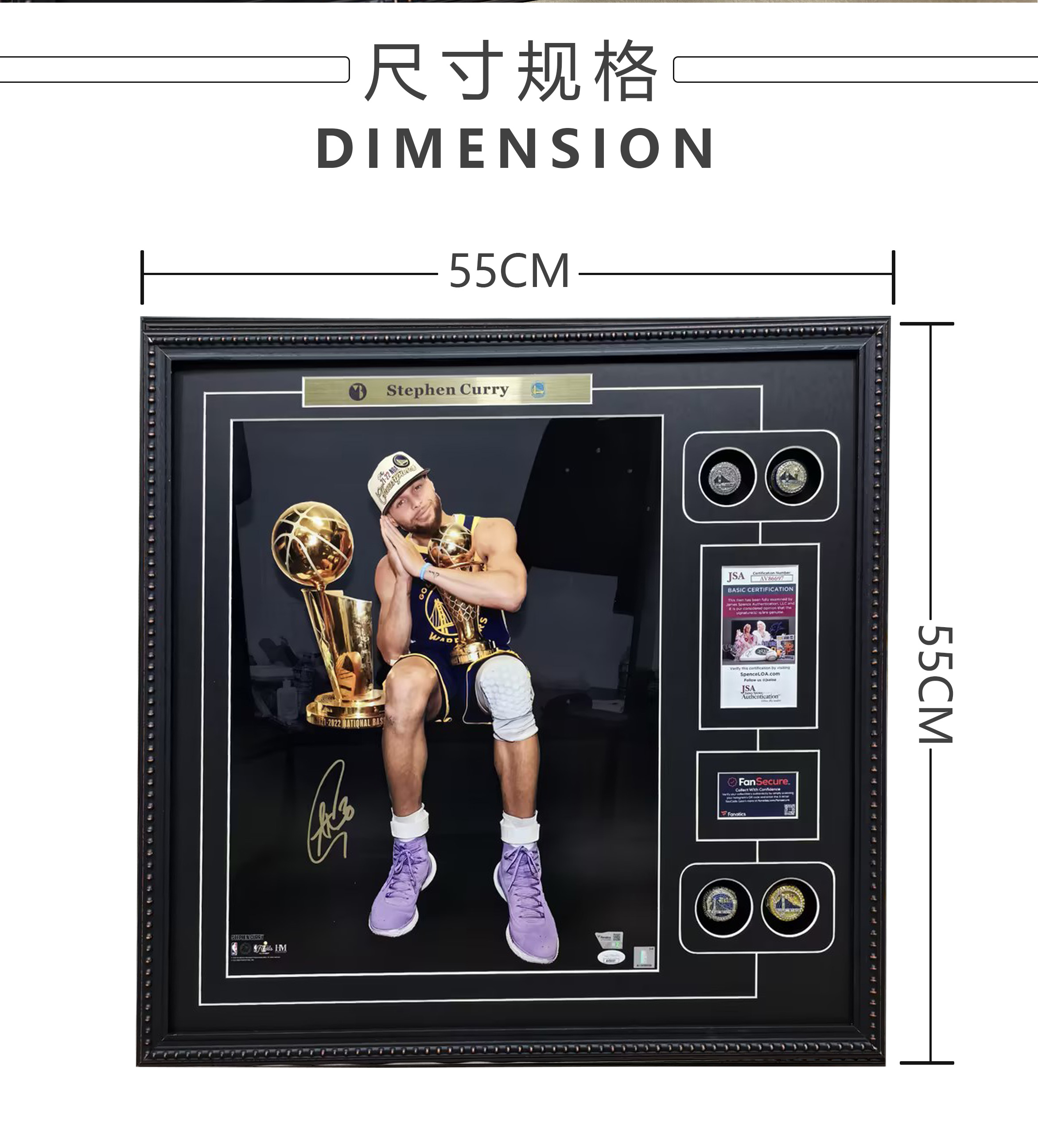 收藏系列 库里 总冠军奖杯晚安 20寸 亲笔签名照片