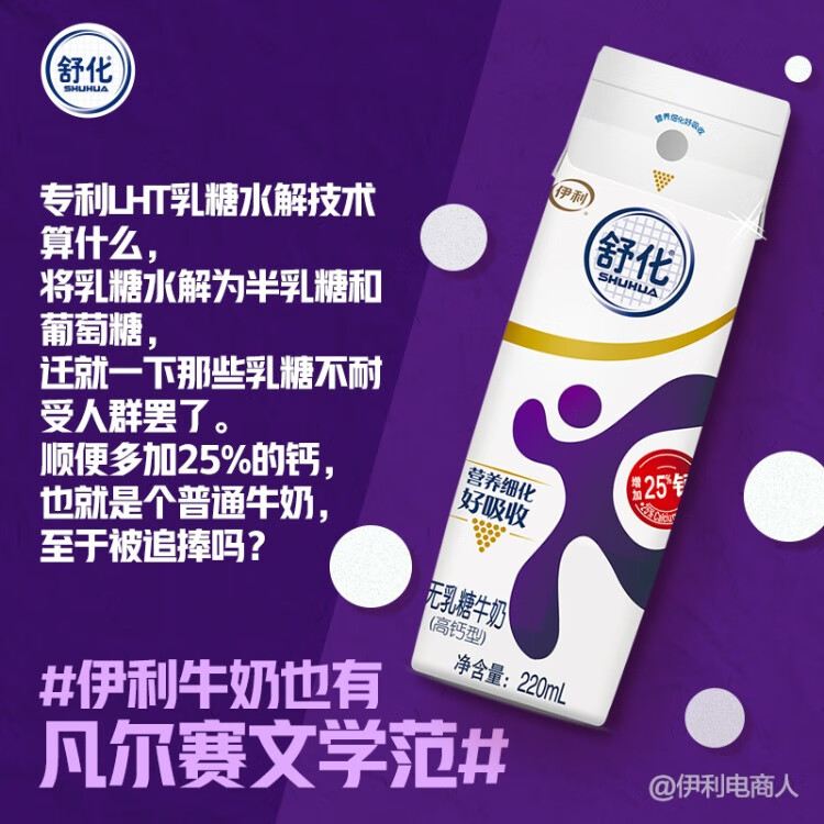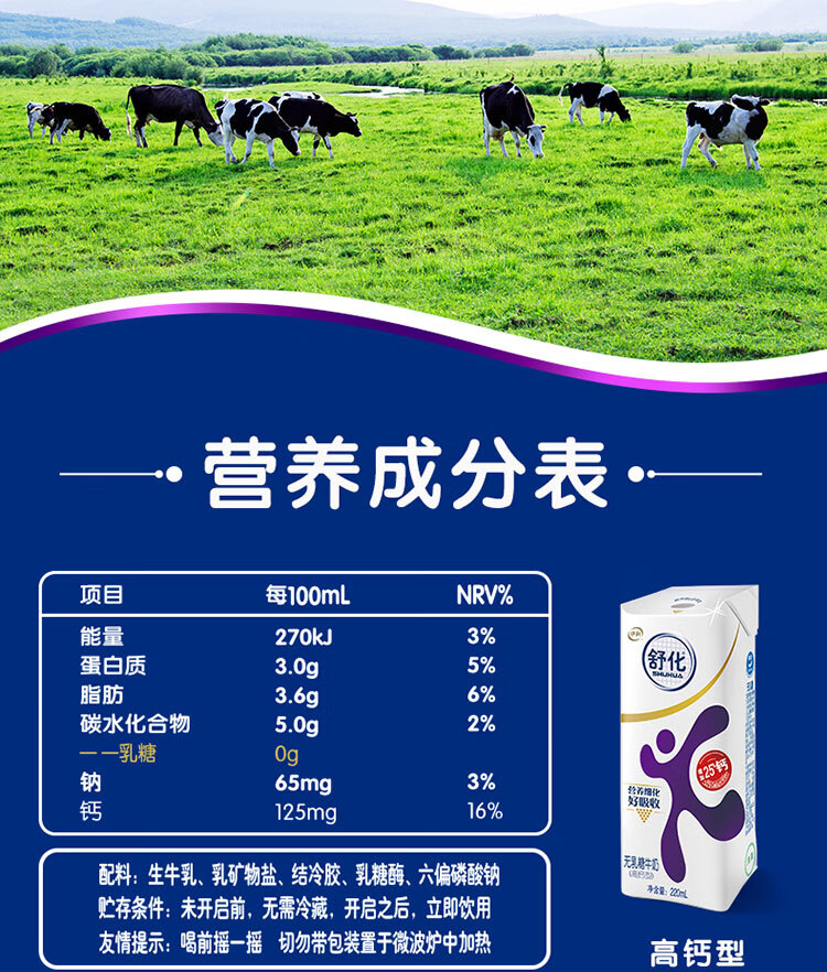 伊利舒化无乳糖牛奶高钙220ml/盒
