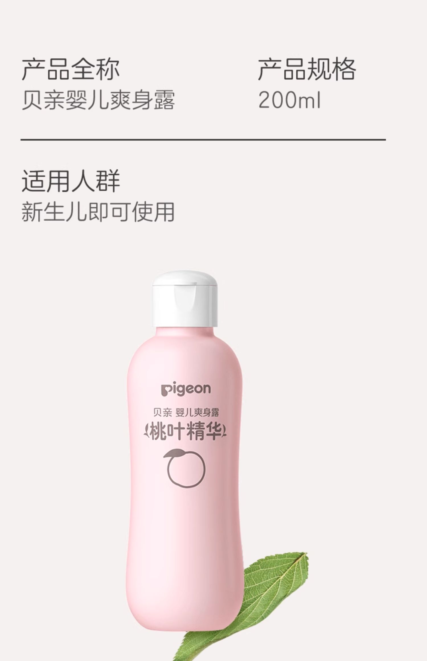 贝亲婴儿爽身露200ml(桃子水)