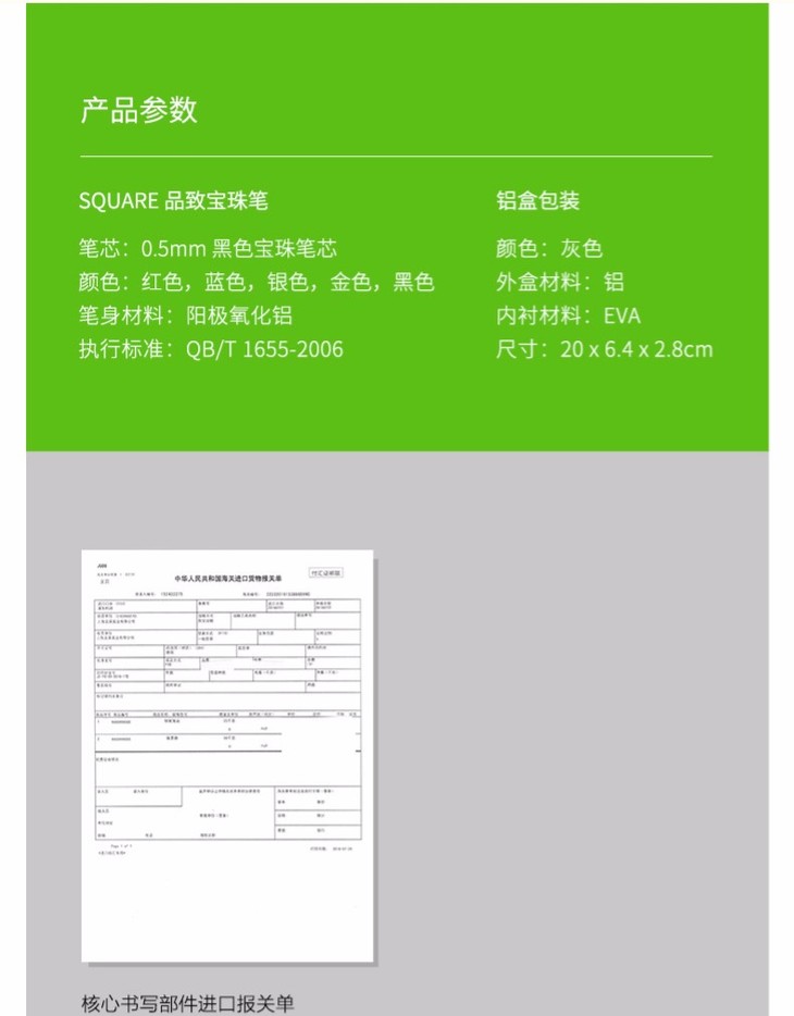 文采SQUAREII品致II原子笔/配KACO/P900F/0.8黑色G2原子笔芯/K1006签字笔中性笔学生办公用