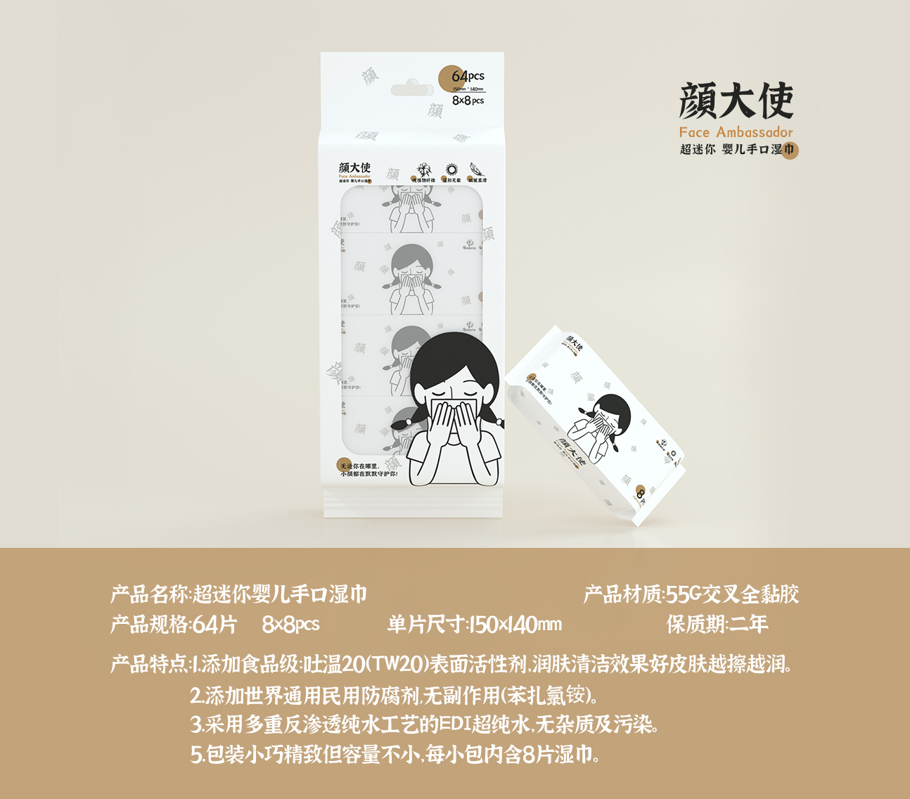 颜大使超迷你婴儿手口湿巾8片*8YDS-1009宝宝专用小包便携随身装