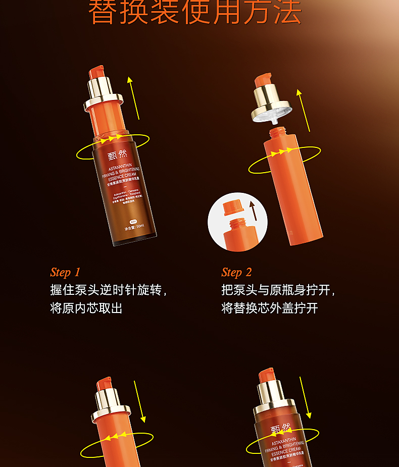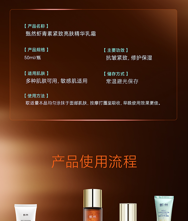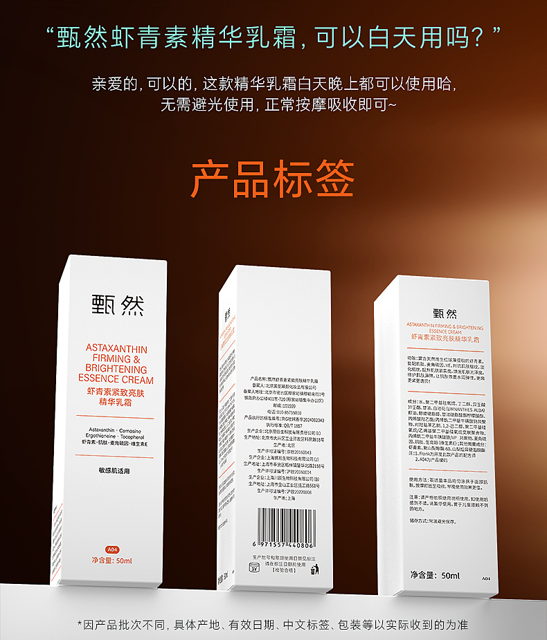 【虾青素乳霜】甄然虾青素紧致亮肤精华乳霜50ml/支(买一瓶送替换装50ml*2 虾青素乳霜5ml*1)