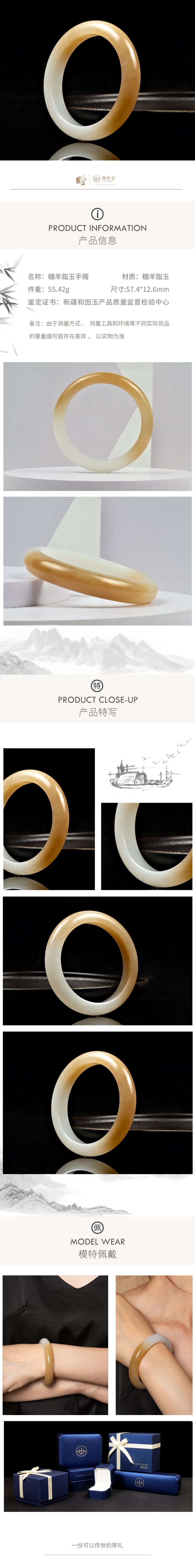 新疆国玉盟世玉和田玉糖羊脂玉手镯57.4圈口【带证书·顺丰物流】