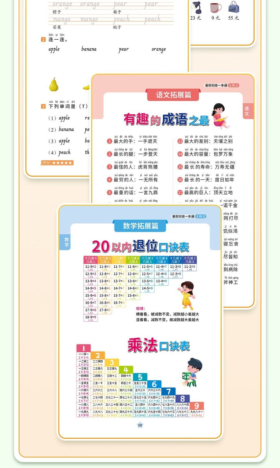 (会员)2025暑假衔接一本通+暑假练字(幼升小、一升二、二升三)语文数学英语30天打卡计划+作文练字帖